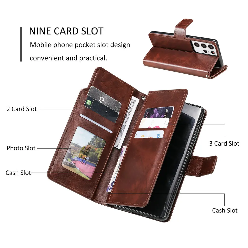 Кожаный чехол-Бумажник для телефона с 9 отделениями для карт для iP...