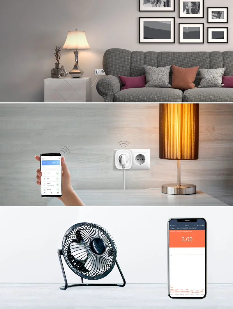 Эта умная вилка позволяет Голосовое управление с помощью Alexa/Google. Простая и быстрая работа путем сканирования qr-кода для загрузки приложения (app Store /Google play Store)