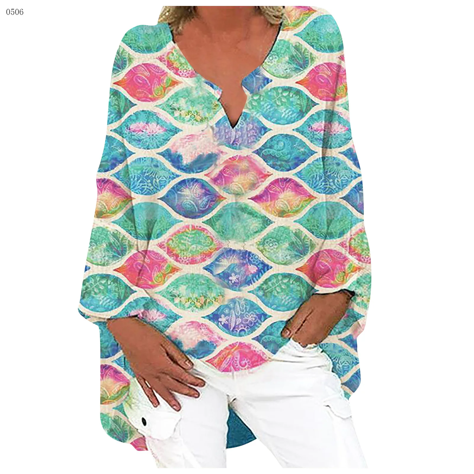 Футболка женская хлопково-Льняная размера плюс, Свободный Топ с длинным рукавом, Пляжная туника с отложным воротником, весна 2021