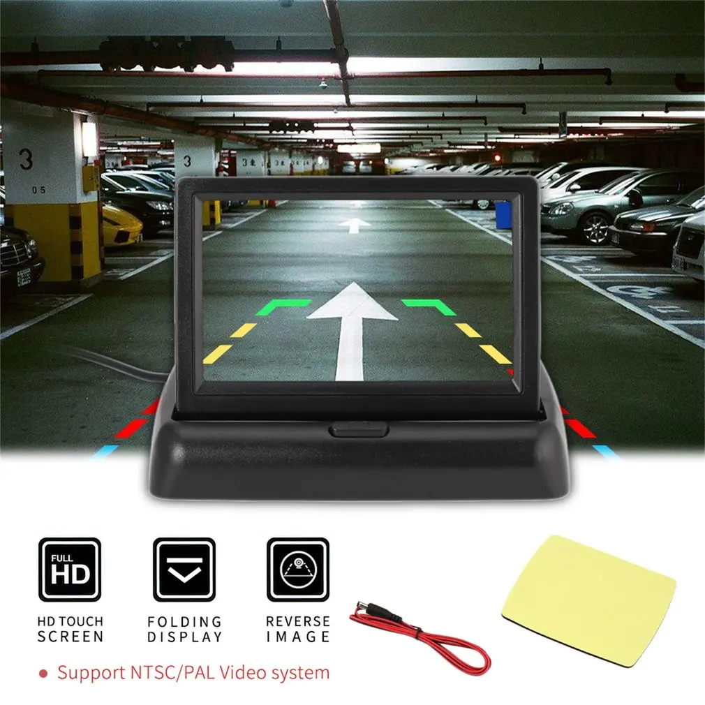 12V 4,3 дюймовым HD монитором под управлением ЖК-дисплей цифровой раскладной стол универсальный автомобильный монитор Камера высокого разрешения заднего вида Дисплей с 2 видео Вход Порты