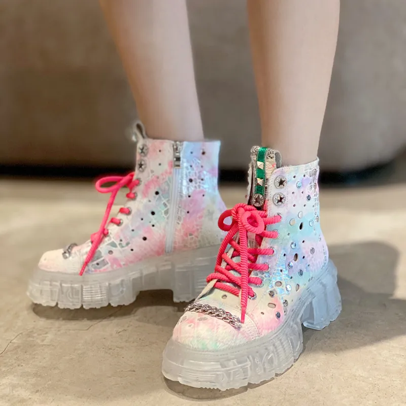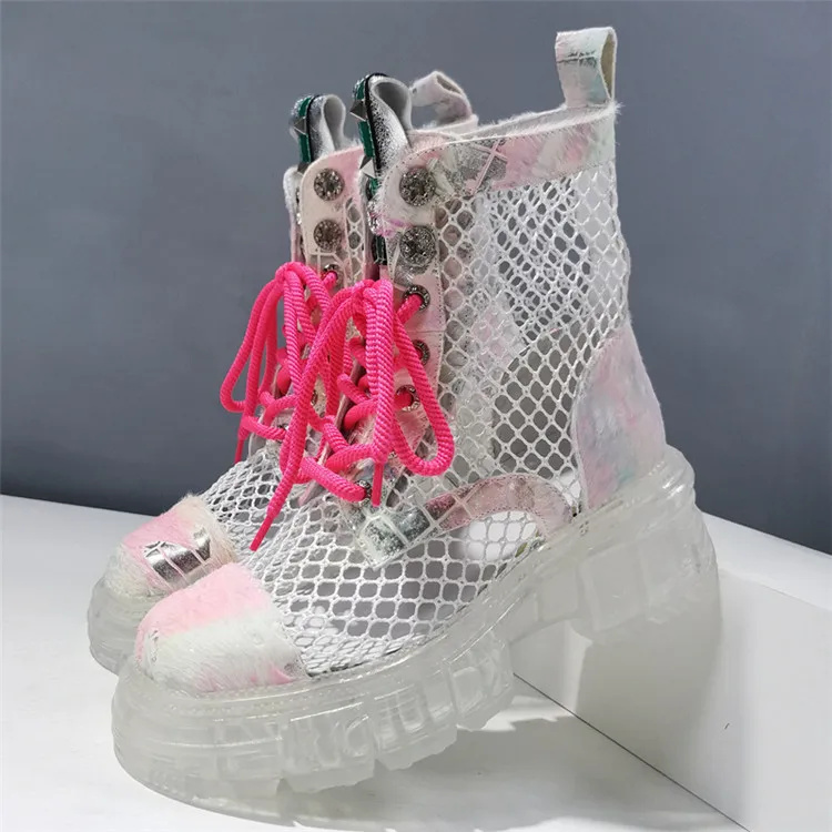 GXCMHBWJ бахрома; Пояс с сеткой из натуральной кожи ботинки из конского волоса; Женские ботильоны на платформе; Сапоги в стиле панк; Обувь в готическом стиле с кружевом, металлической цепочкой; Женская обувь на шнуровке; Туфли Demonia сапоги