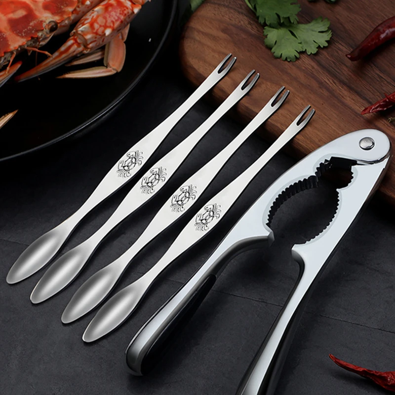 1. Вилка для крабов из нержавеющей стали. Крабовые Когти для еды крабов. Домашние пилинг из морепродуктов, мохнатые крабы с грецкими орехами и крабовыми когтями.