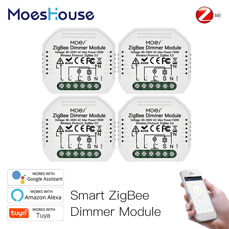 Умный диммер MoesHouse Mini DIY Tuya ZigBee 3,0, релейный модуль Tuya ZigBee3.0 Hub, требуется приложение Smart Life/Tuya, беспроводной пульт дистанционного управления, работает с голосовым управлением Alexa Google Home, 1/2 каналов, 1 канал От MoesДом Основные характеристики: