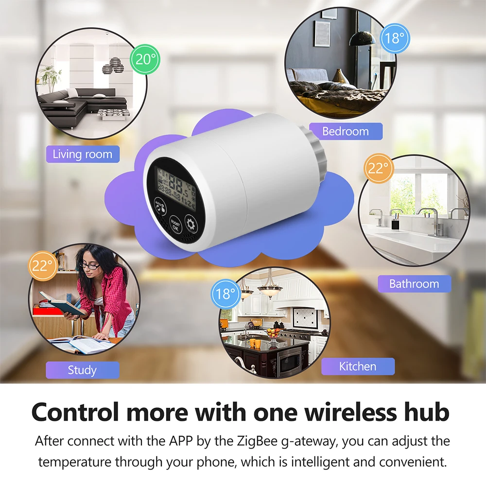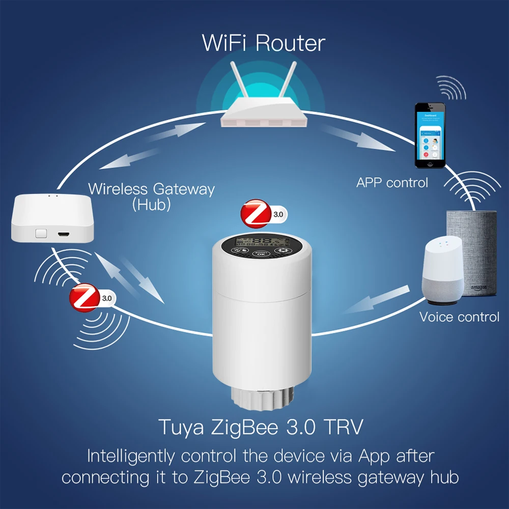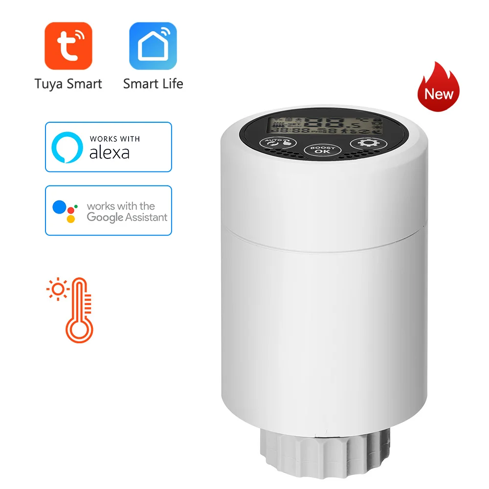 Термостат TRV Smart Tuya ZigBee3.0 для привода радиатора, программируемый клапан, регулятор температуры с голосовым управлением, Alexa Google, светодиодный дисплей