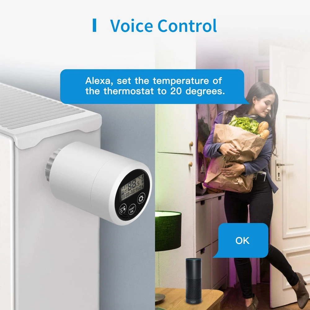 Этот радиатор термостата клапан может работать с Alexa и Google Assistant для громкой голосового управления.
