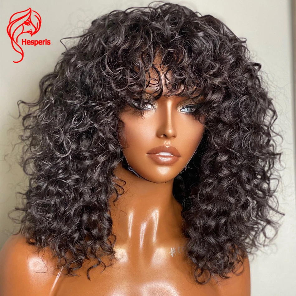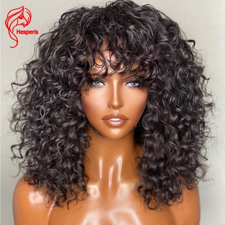 Hesperis Jerry, кудрявые человеческие волосы, парики с челкой, полностью сделанные на машинке, парики для головы, Топ для женщин, перуанские волосы Remy, плотность 200