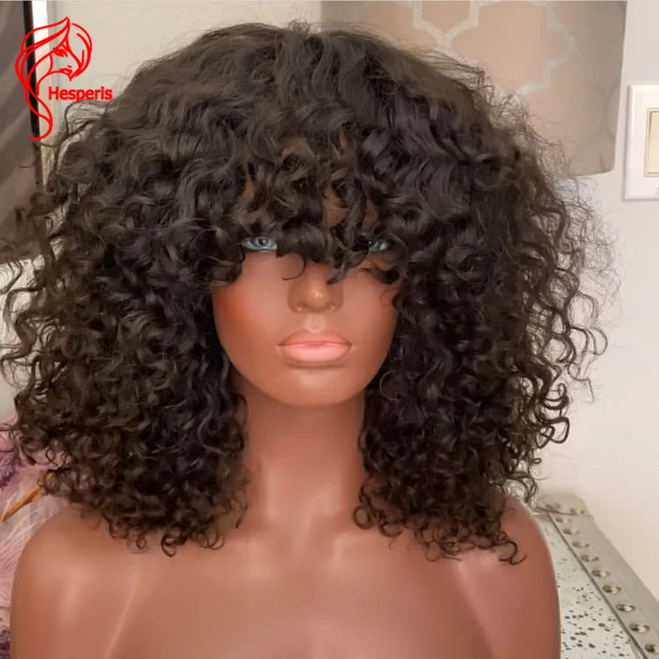 Hesperis Jerry кудрявые человеческие волосы парики с челкой полностью машинное изготовление парики для женщин перуанские Реми 200 плотность