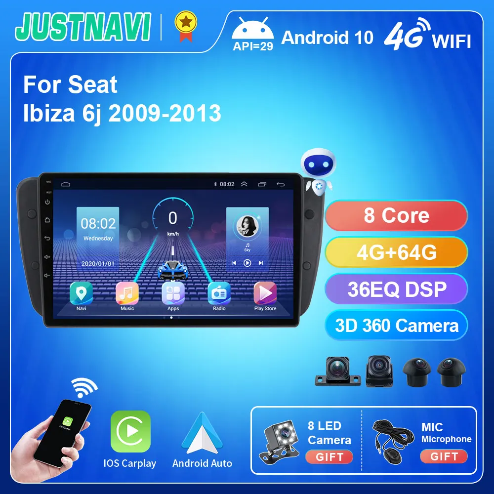 Автомагнитола для Seat Ibiza 6j Sport Coupe 2009 - 2013 Android 10,0, мультимедийный проигрыватель No 2din, стерео 360 Sony Camera DSP Car Play