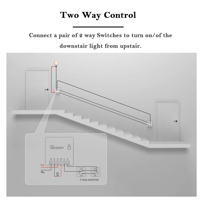 Это мини-и компактный смарт-переключатель DIY, используемый для различных видов коробок переключения, даже самый маленький Стандартный Переключатель ЕС. Удобно автоматизировать бытовую технику с помощью приложения eWeLink через ваш смартфон или планшет или голосовую команду. Поддержка подключения внешнего переключателя на перекидной светильник не может автоматически прикрепить назад для легкого управления подключенными устройствами в вашем доме, как на вашем телефоне, так и непосредственно со стены. Он поддерживает режим «сделай сам» (предназначен для разработчиков), который позволяет пользователям интегрировать мини в третьи по всему миру вечерние системы управления с открытым исходным кодом для достижения контроля локальной сети без облачного сервиса, например, домашний помощник, openHAB, ioBroker. И т. д.