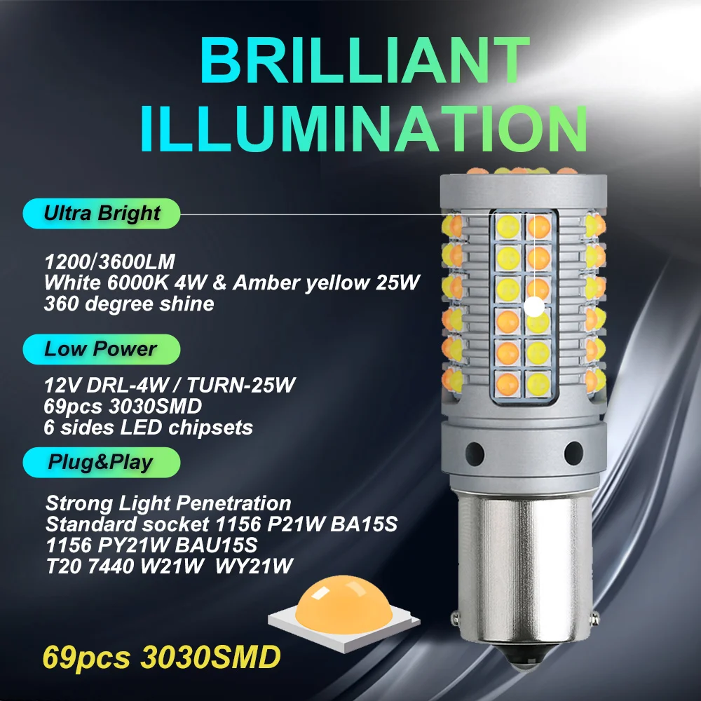 Автомобильные светодиодсветодиодный дневные ходовые огни T20 W21W WY21W 7440 BA15S BAU15S 1156 69 3014SMD, противотумансветильник фары, поворотные парковочные ДХО, внешний источник светильник