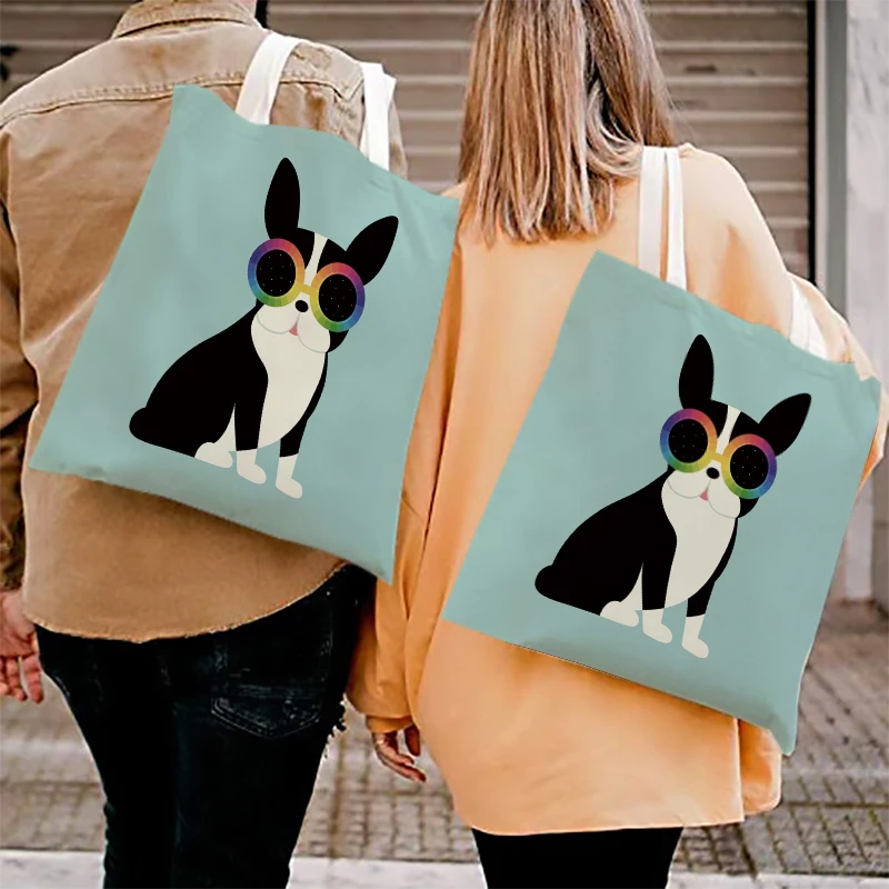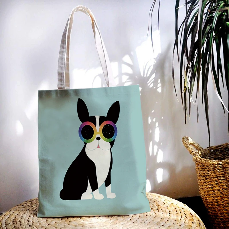 Холщовая женская сумка на плечо, с принтом французского бульдога, д...