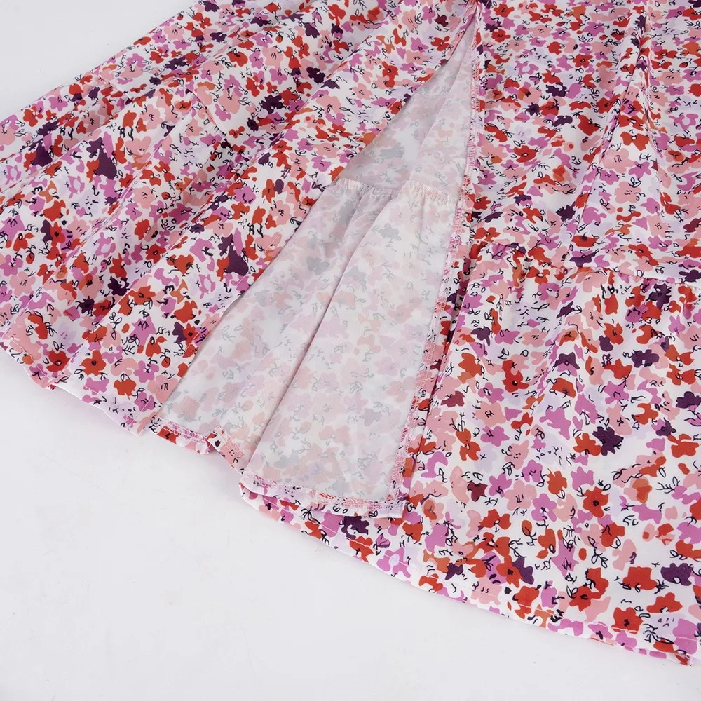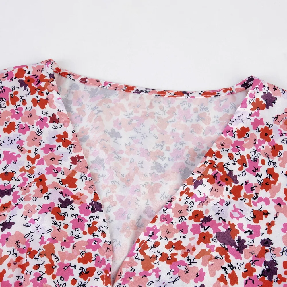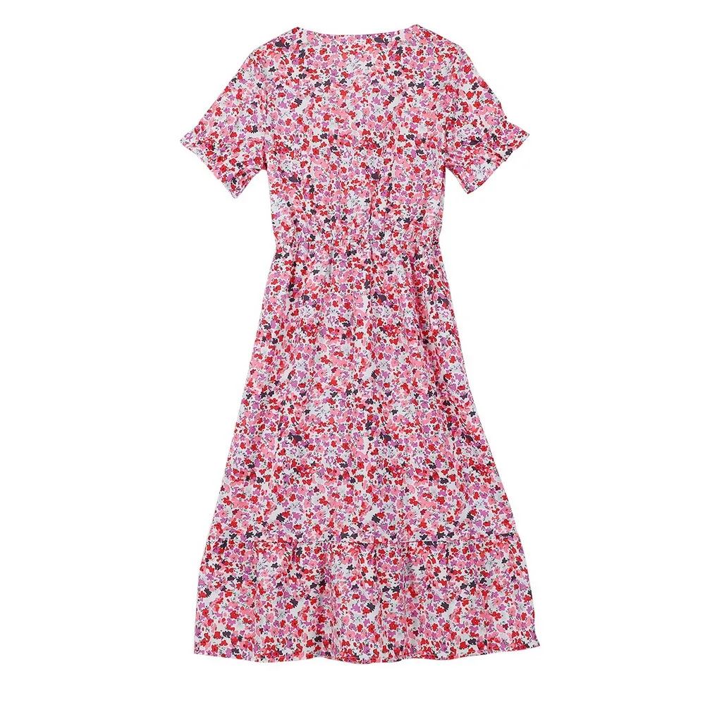 Платье женское длинное на пуговицах, вечерние кантное вечернее элегантное ТРАПЕЦИЕВИДНОЕ с цветочным принтом, на пуговицах, с V-образным вырезом, с коротким рукавом и разрезом, Повседневная мода, на лето
