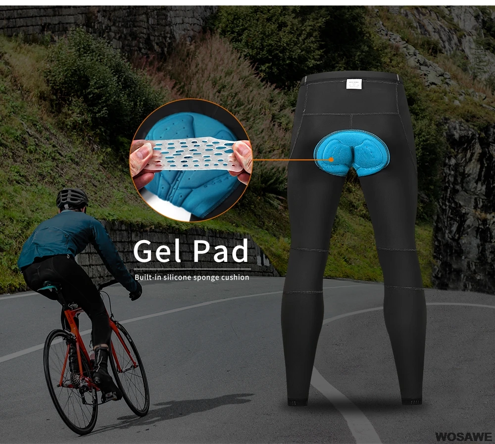 Мужские велосипедные колготки WOSAWE, дышащие спортивные однотонные черные брюки для горного велосипеда, шоссейных велосипедов