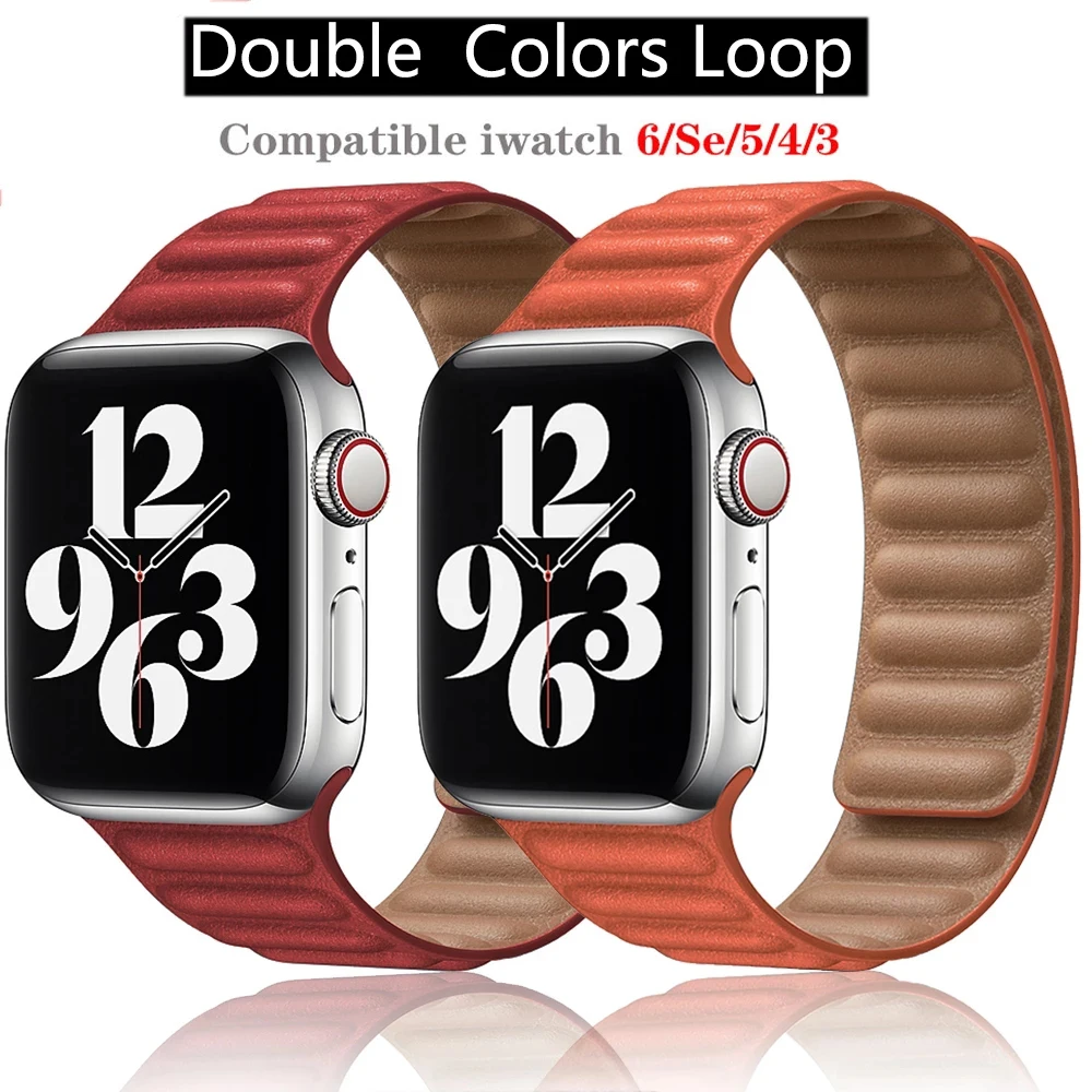 Ремешок магнитный для iWatch 7 6 SE 5 4 3 2 1, кожаный браслет для ...