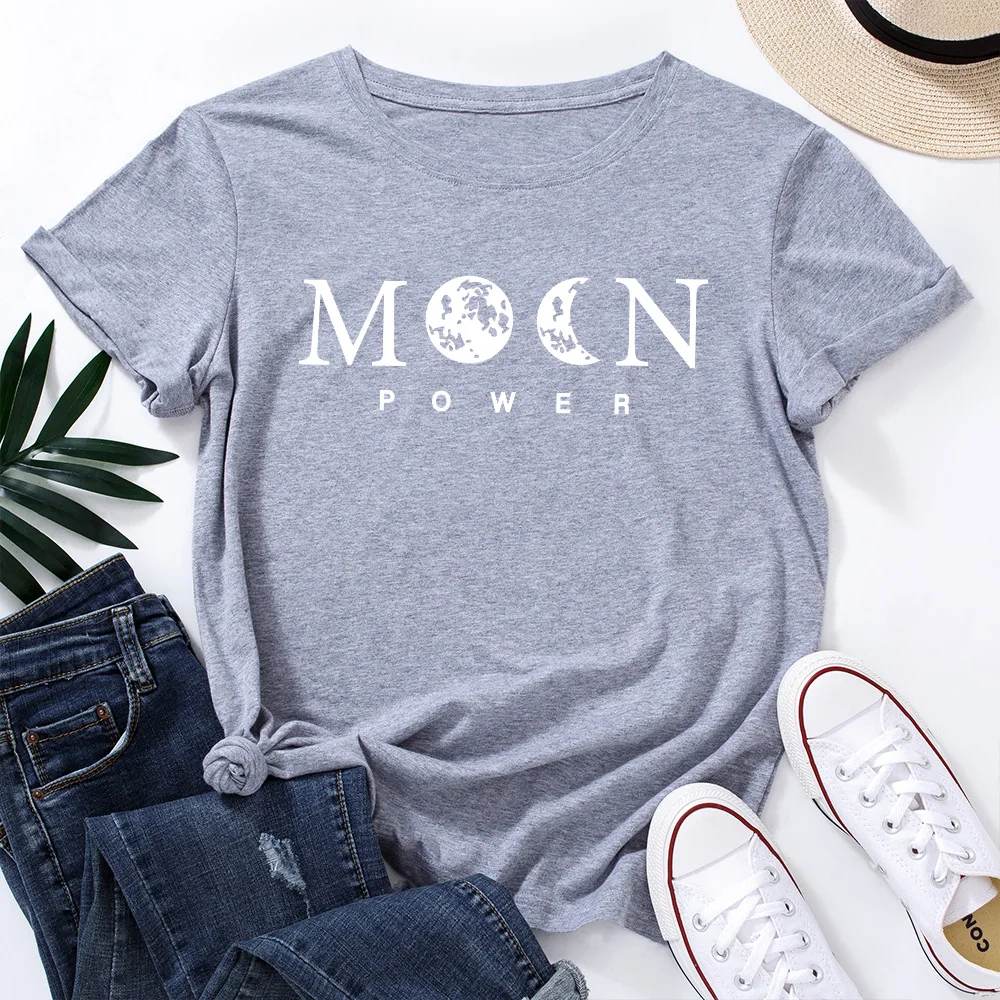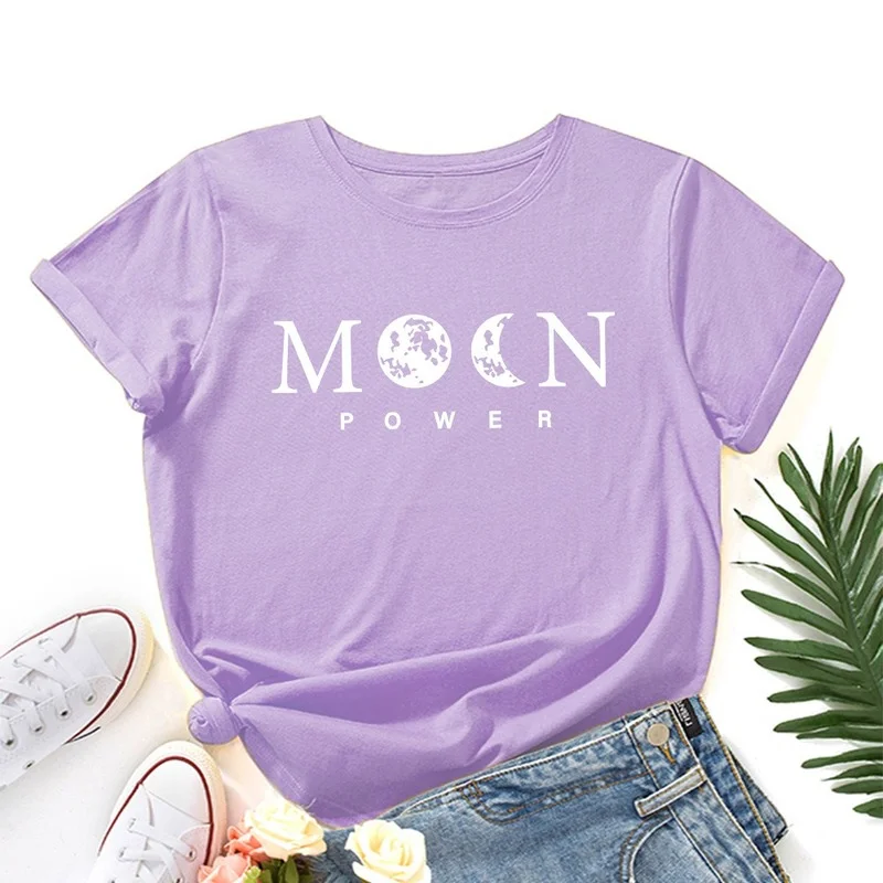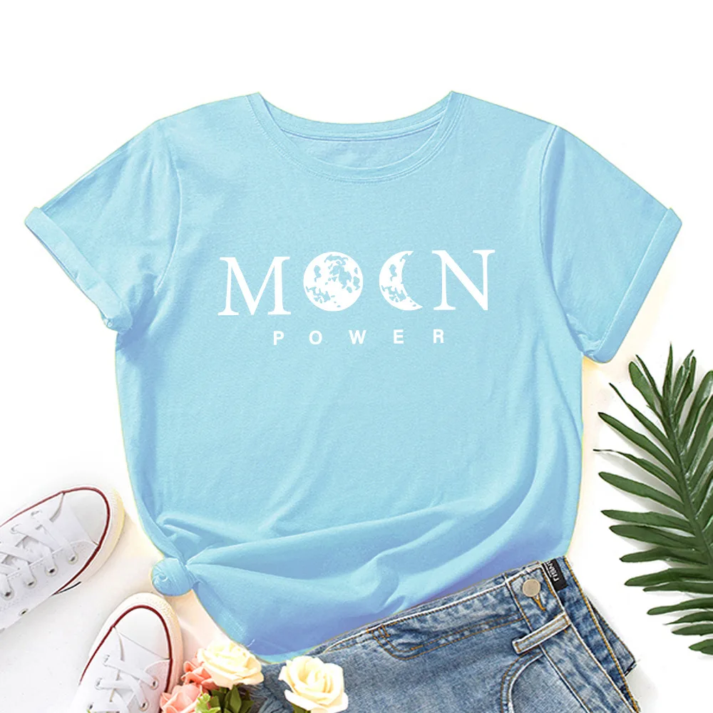 Женская хлопковая Футболка с круглым вырезом, с принтом и надписью Moon Power
