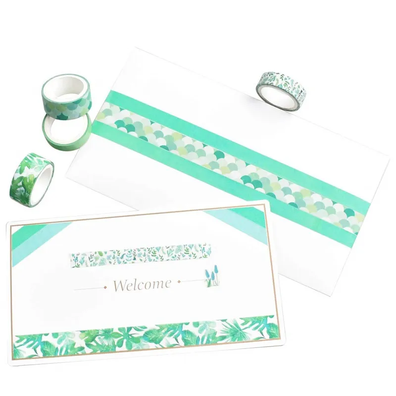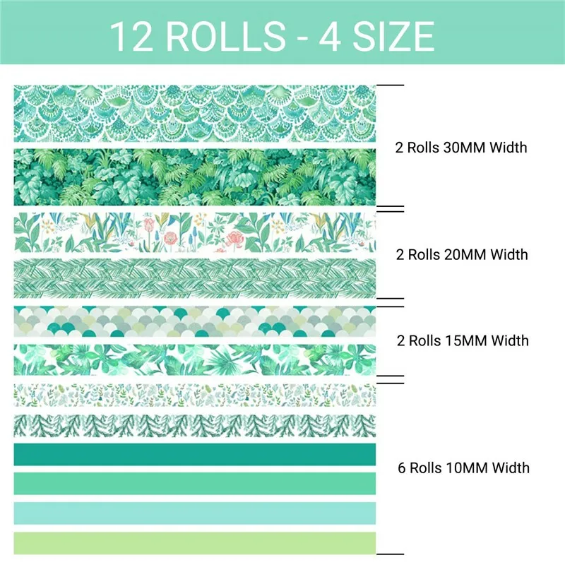 Маскировочная лента для скрапбукинга, 12 рулонов, набор декоративного скотча Васи зеленых листьев