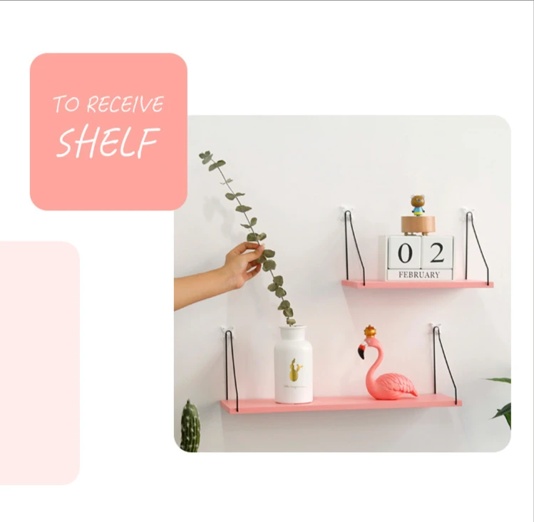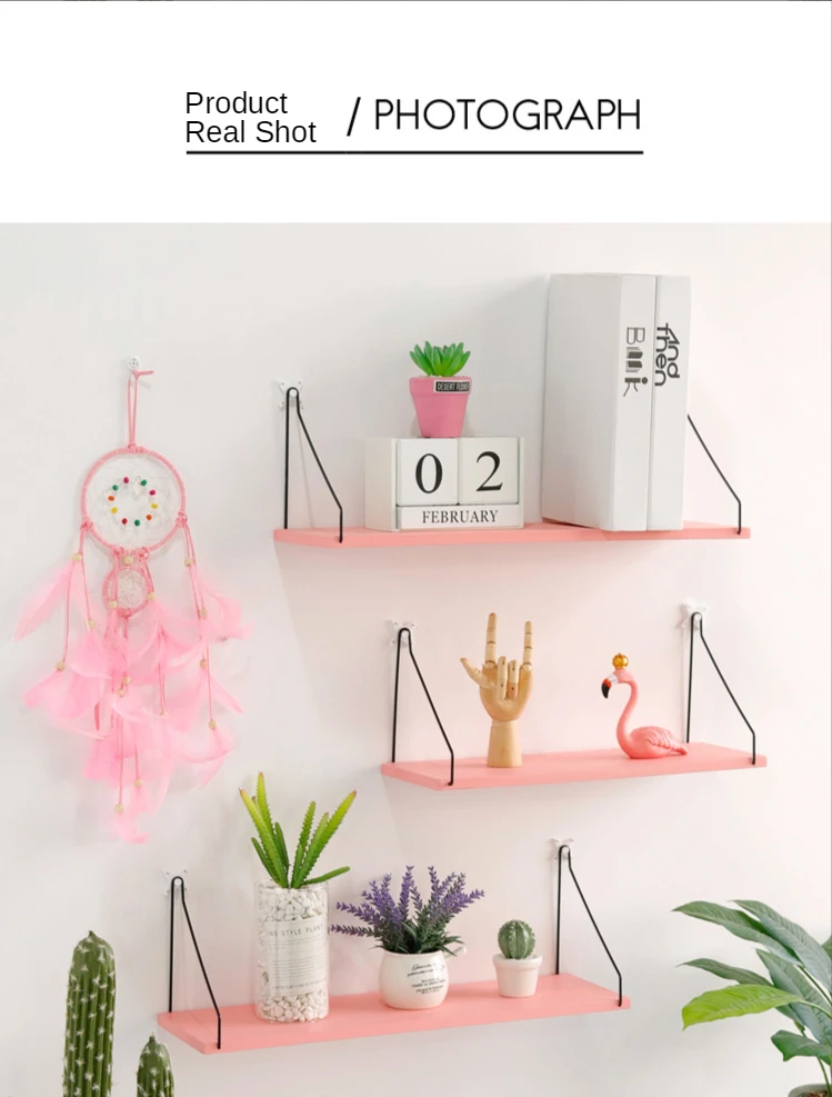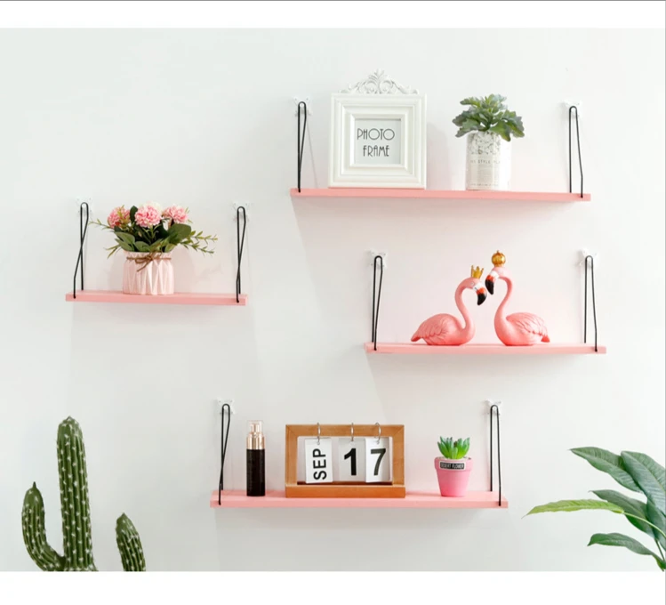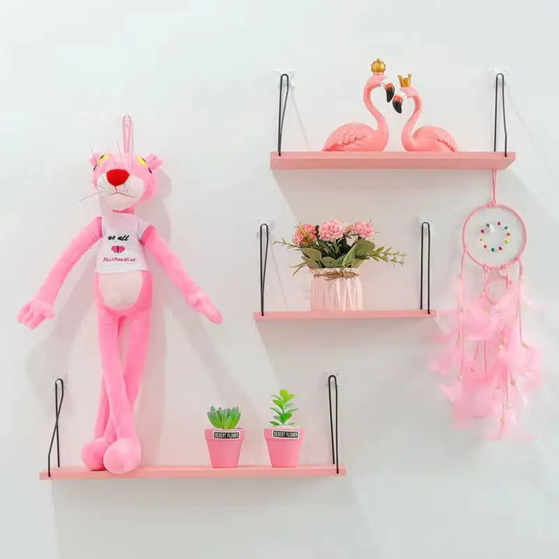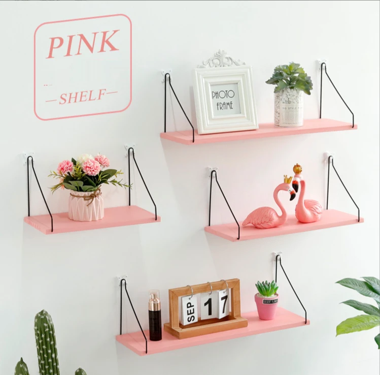Деревянная настенная полка, розовые плавающие полки для девочек, ук...