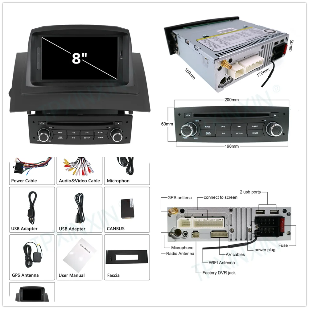 Carplay для Peugeot 4072004 2005 2006 2008 2009 2010 Android 10 вид...