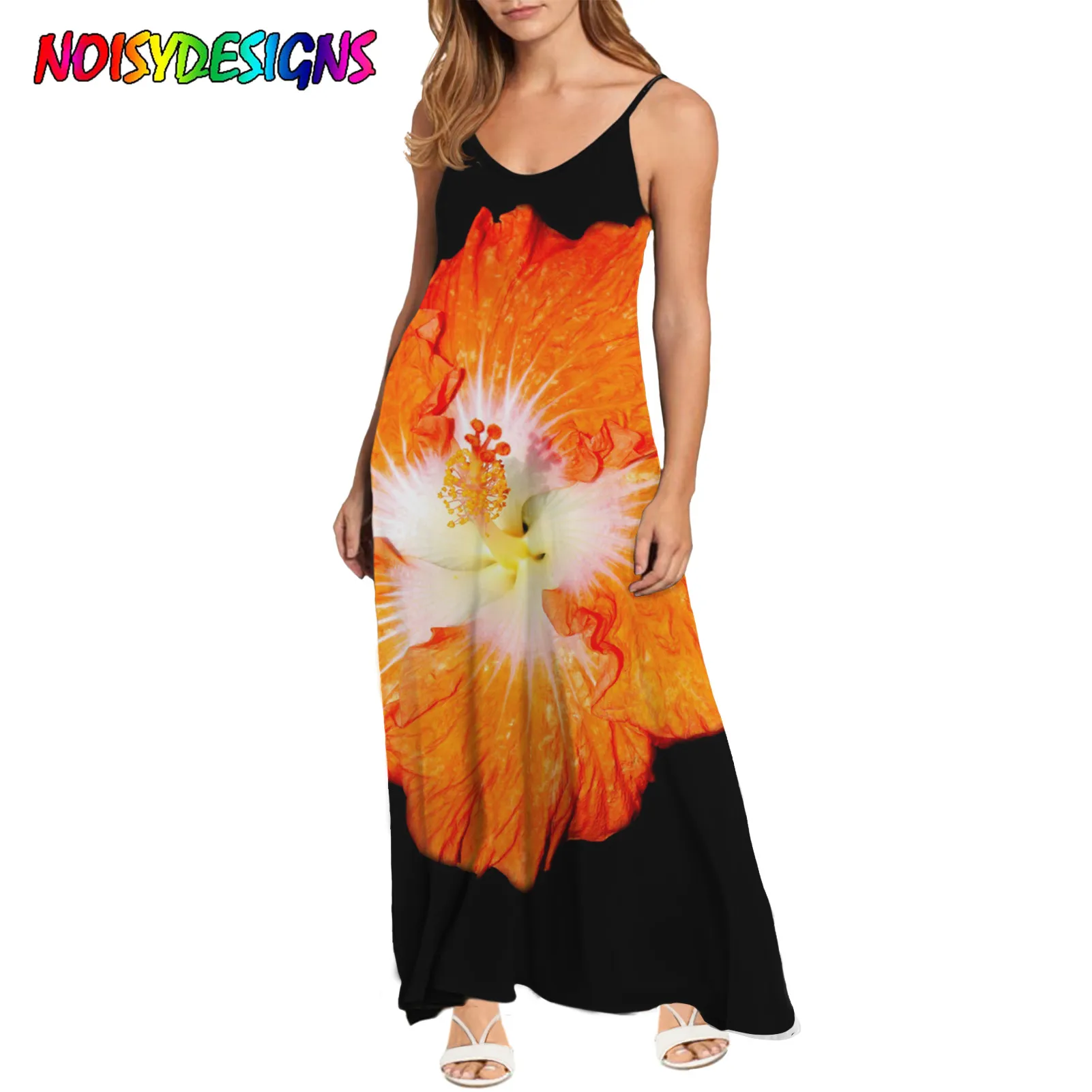 NOISYDESIGNS летнее платье для женщин, сексуальное платье без рукавов, длинное платье Гавайские цветы гибискуса печать Элегантные бак Макси Vestido Robe Femme