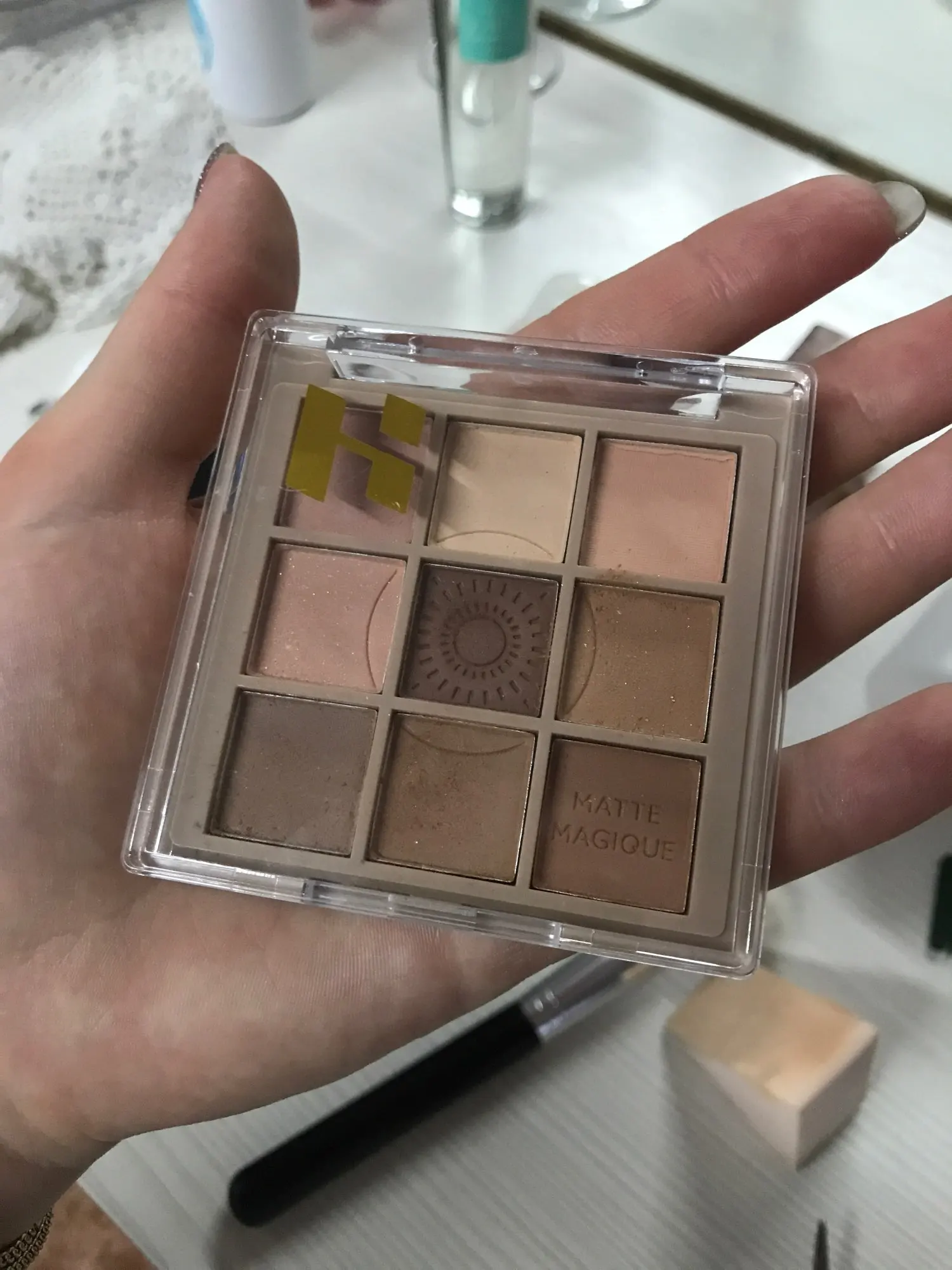 Тени для век отличные и все, но в них есть та раздражающая наклейка, которая оставляет остатки на поддонах теней для век, кроме того, что это хорошо :)