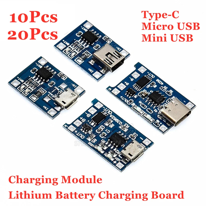 20 шт. 18650 TP4056 модуль зарядного устройства литиевой батареи зарядная плата с защитой типа cMicroMini USB 5 В 1A 10 шт.
