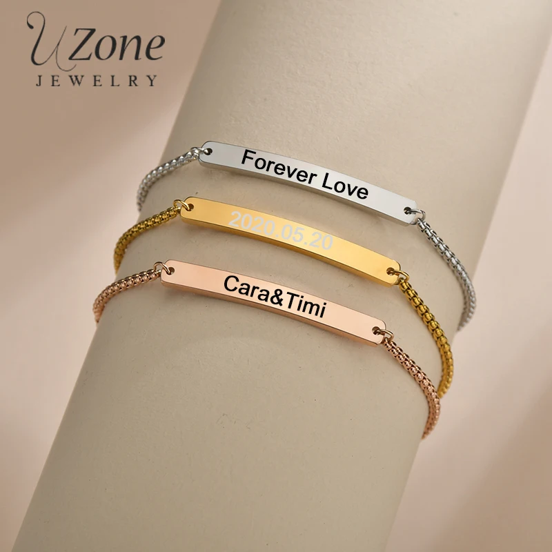 UZone на заказ с гравировкой имени Дата ID браслеты из нержавеющей стали для детей регулируемый браслет-цепочка для мальчиков и девочек подарок на день рождения ювелирные изделия