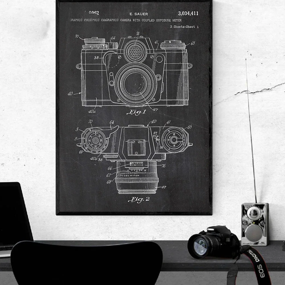 Картина на холсте винтажный постер камера патент настенное Искусство Античная камера художественный постер ретро настенные картины фото украшение