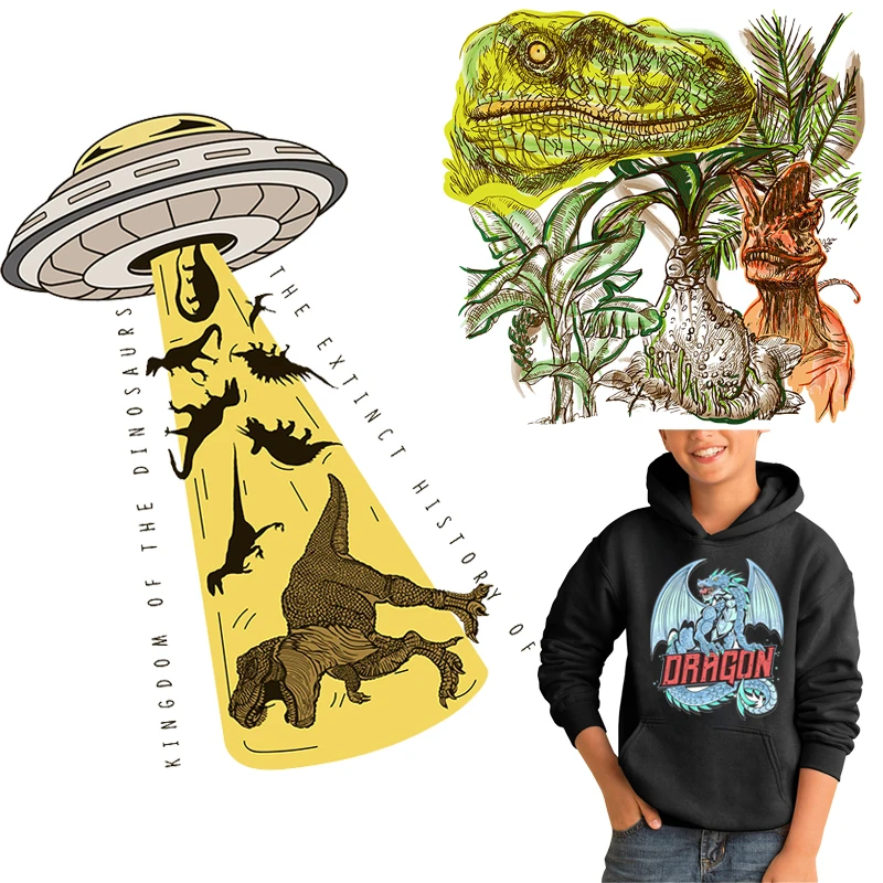 Большие термонаклейки Юрского периода нашивки в виде динозавра, НЛО, термоклейкие переводы для одежды патч аппликация сделай сам
