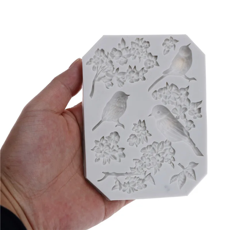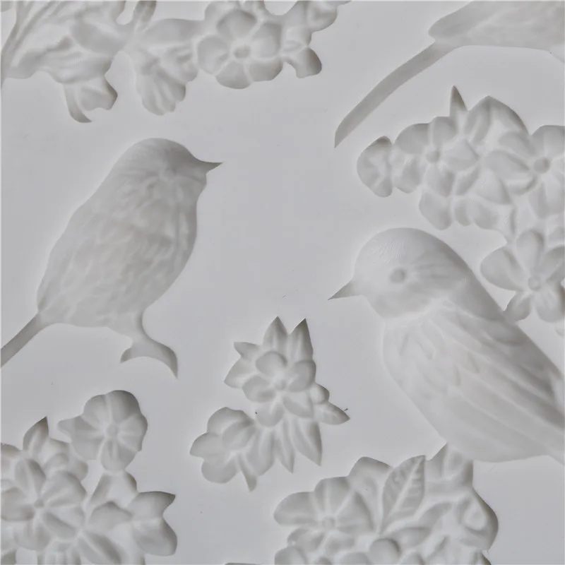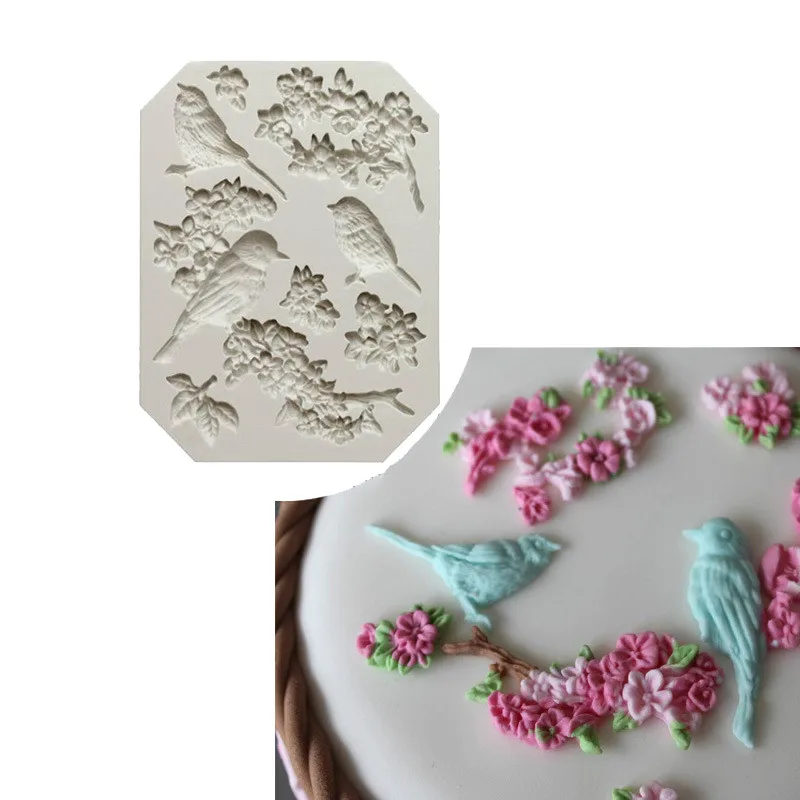 Силиконовая форма для помадки с птицами и цветами, инструменты для украшения торта, форма для шоколадной мастики