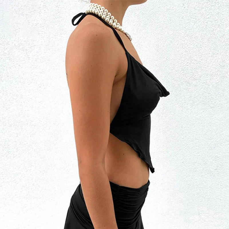 Женский топ с открытой спиной, белый топ без рукавов, уличный топ в стиле 90-х Y2K, укороченный топ с V-образным вырезом и складками, летние майки