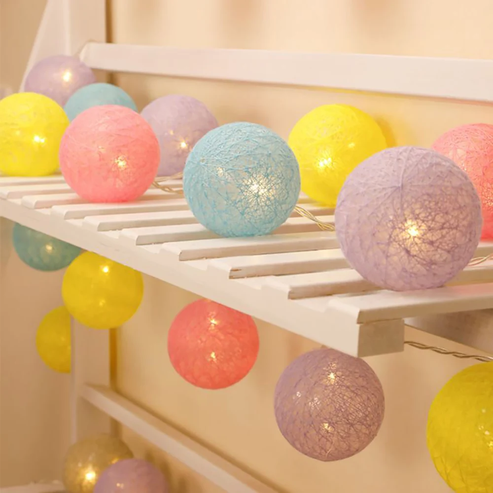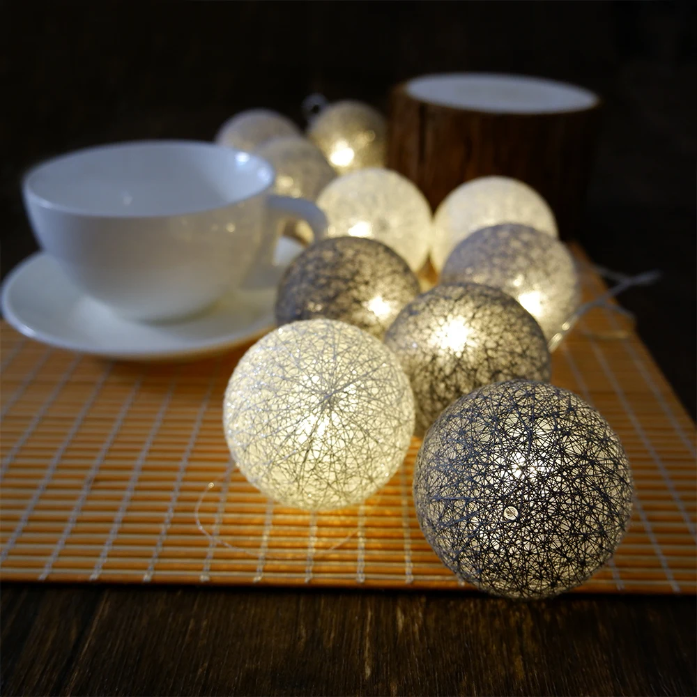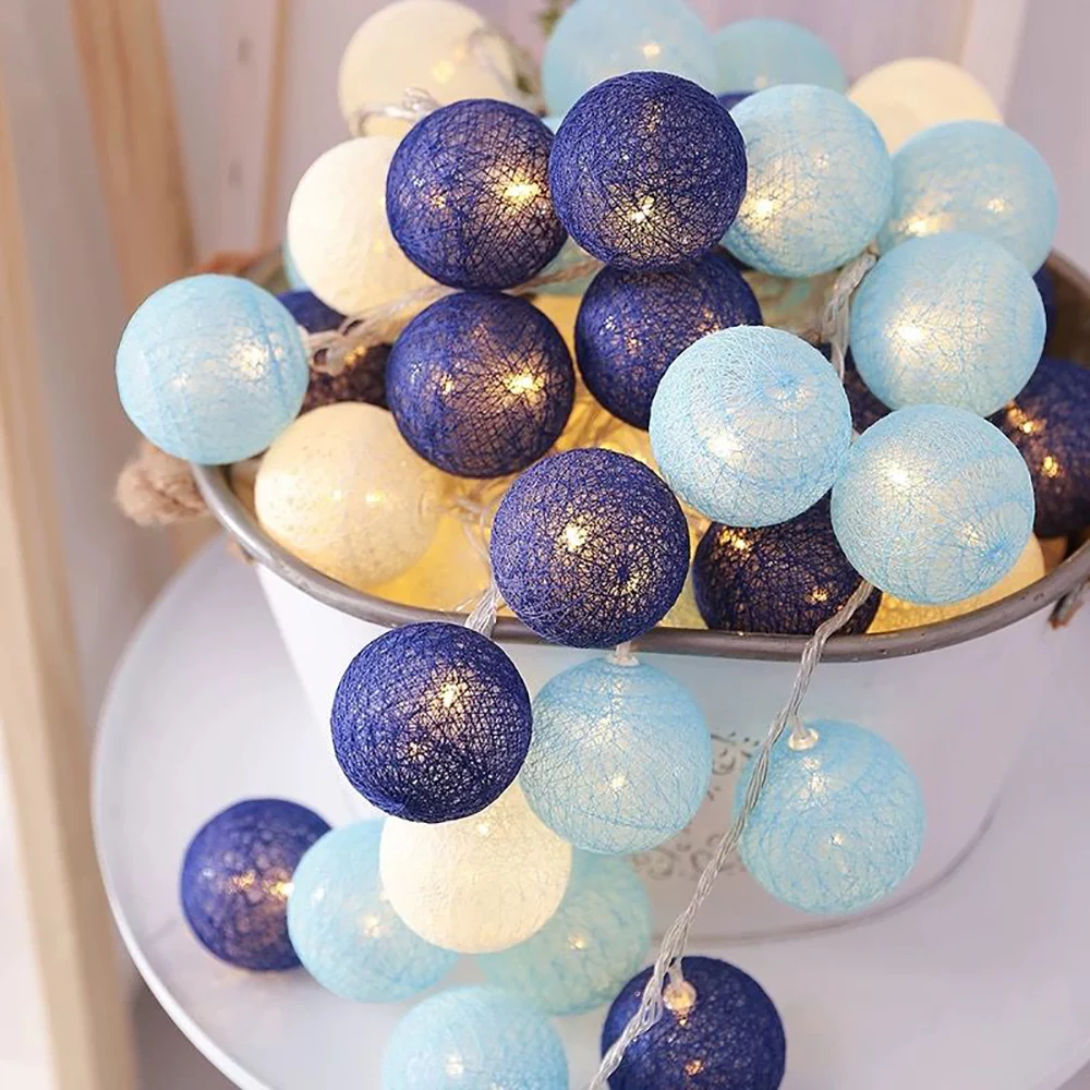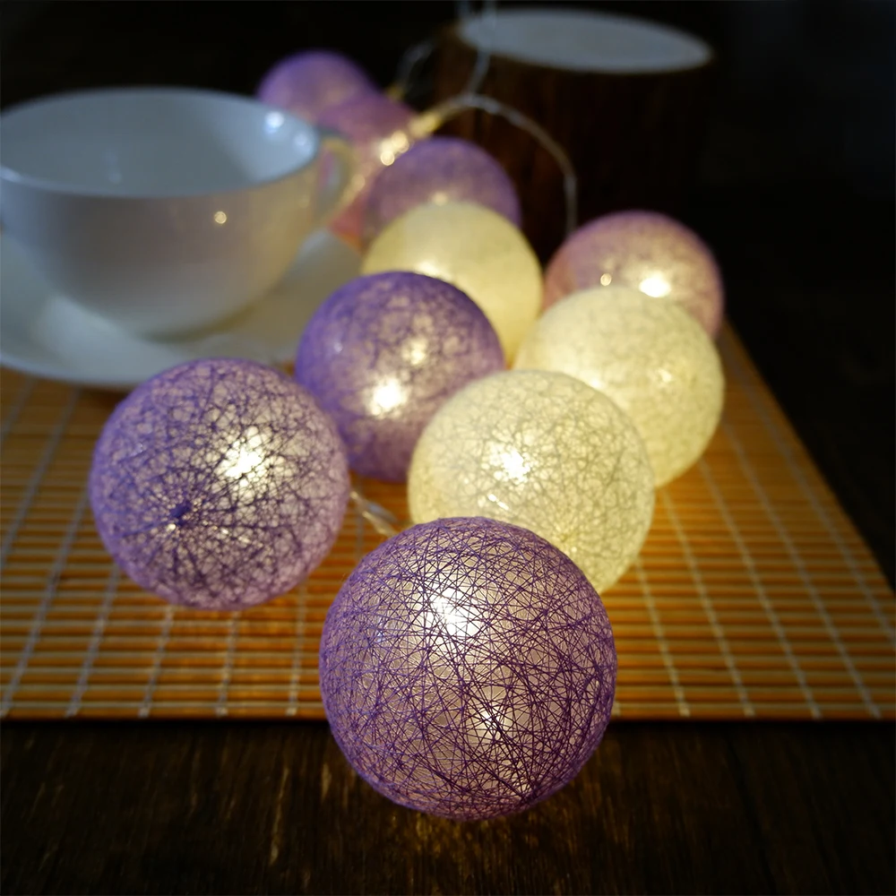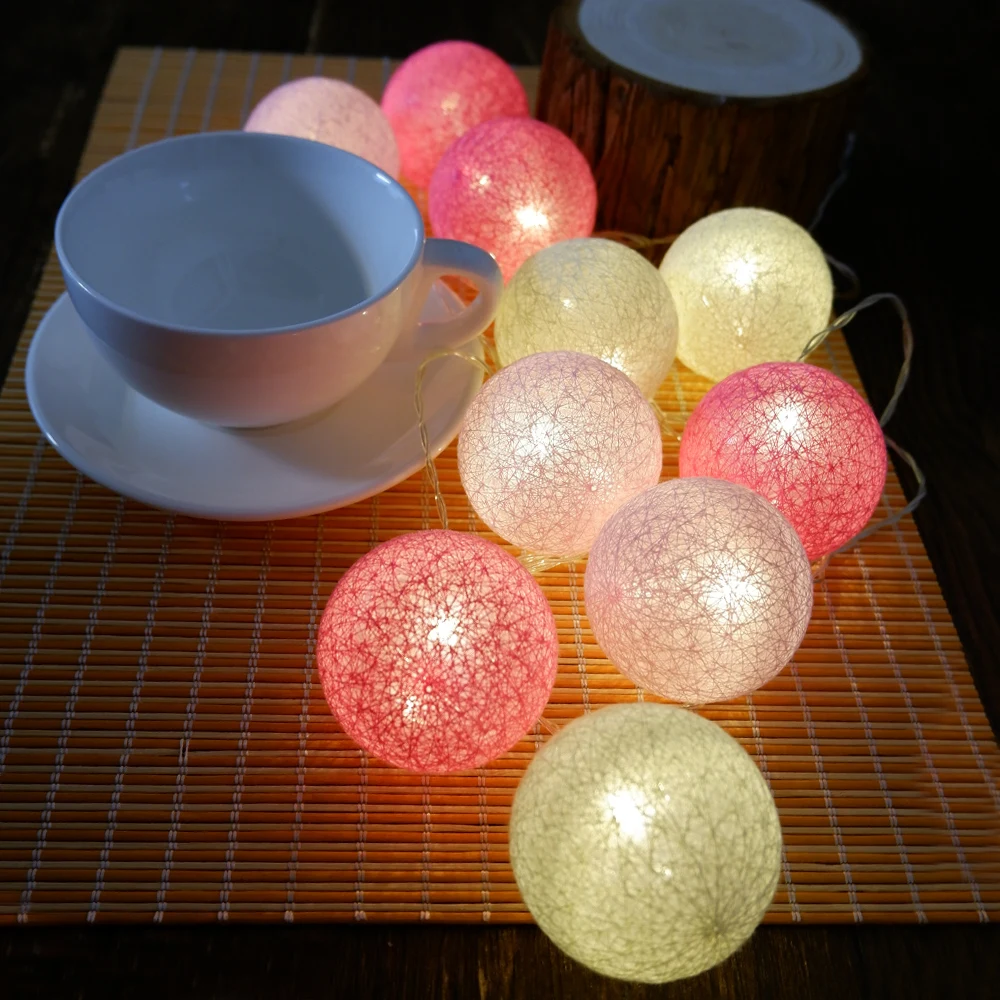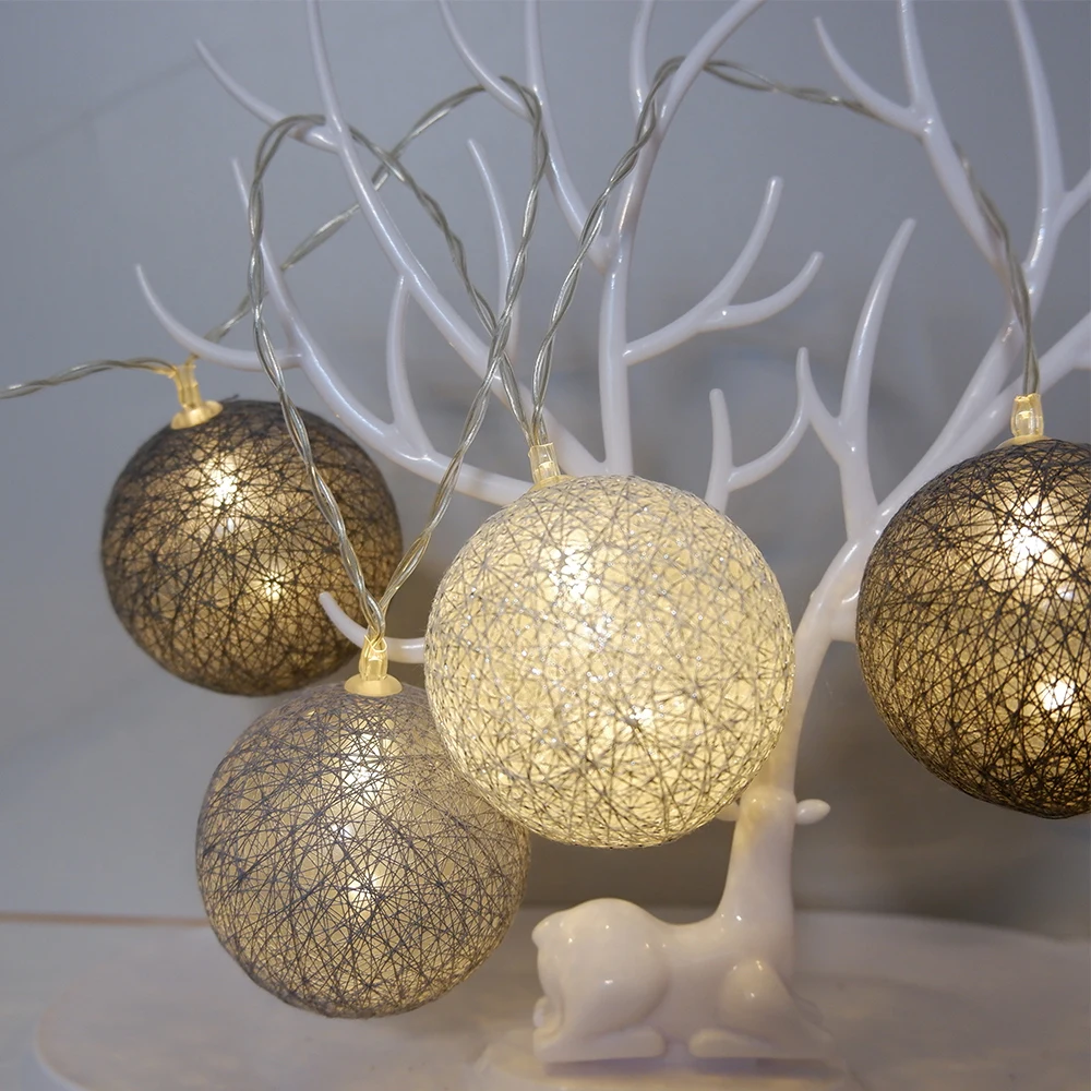 Светодиодная гирлянда с хлопковыми шариками, уличный шнурок с ламсветильник ками, праздничное украшение для свадьбы, Рождества, вечеринки, спальни, сказочное освещение