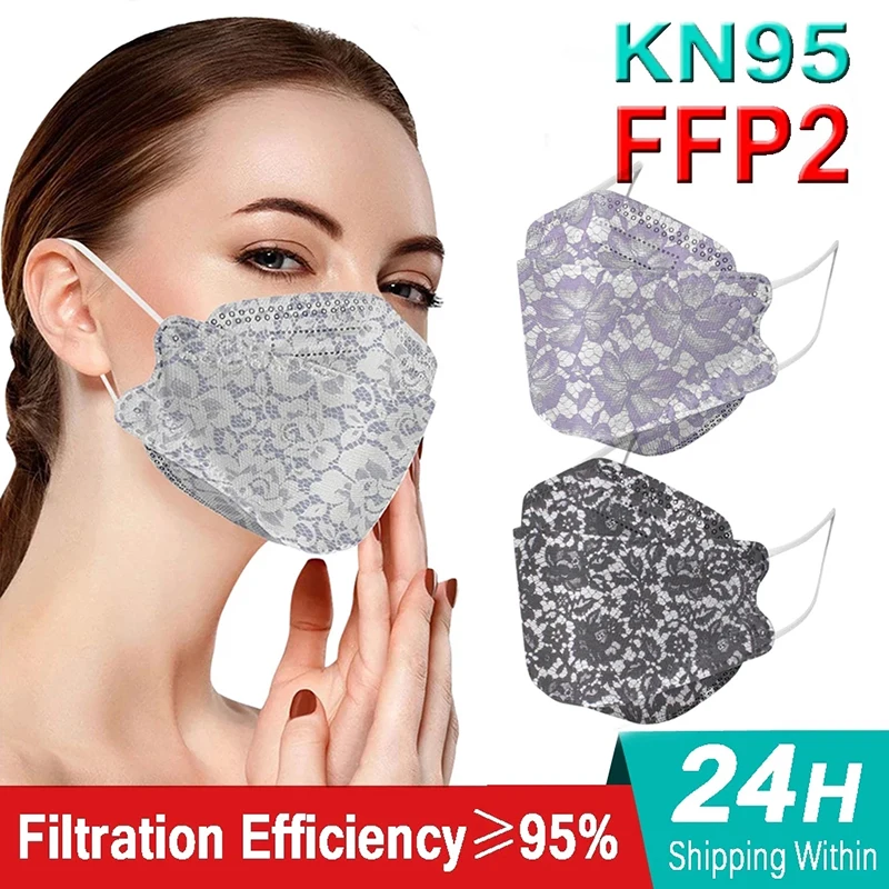 Многоразовая маска для лица ffp2fish KN95, с кружевом и цветочным принтом