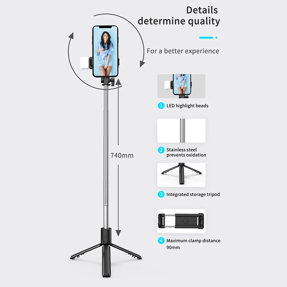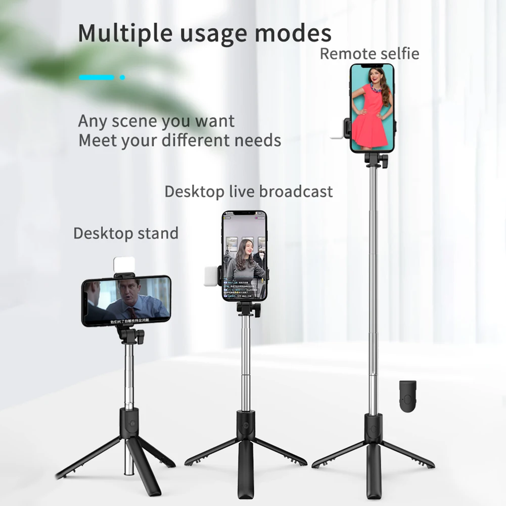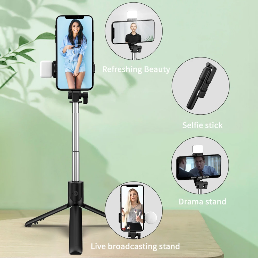 R1 Выдвижная селфи-палка для телефона мини-штатив Bluetooth-совместимый с затвором дистанционный монопод с заполняющим светильник Регулируемая Складная портативная подставка для смартфона