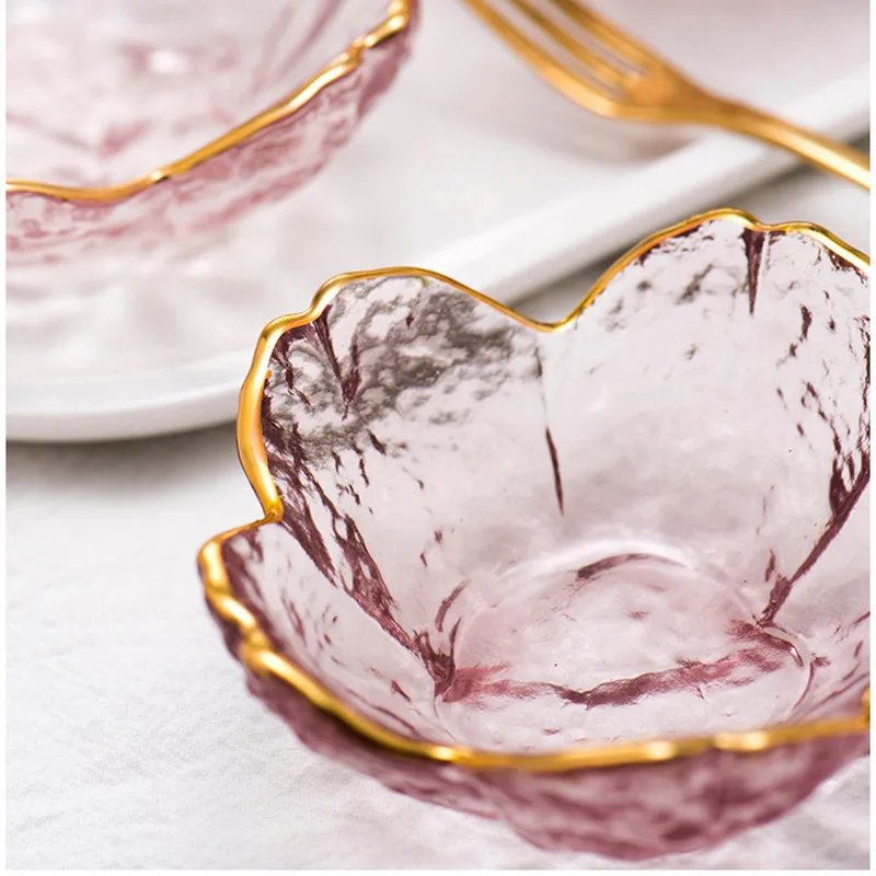 Небольшой Стекло блюдо Nordic Стиль золотой вставкой Стекло соус чаша мини японской вишни Тарелка Для Приправ Для Мороженого с фруктами сала