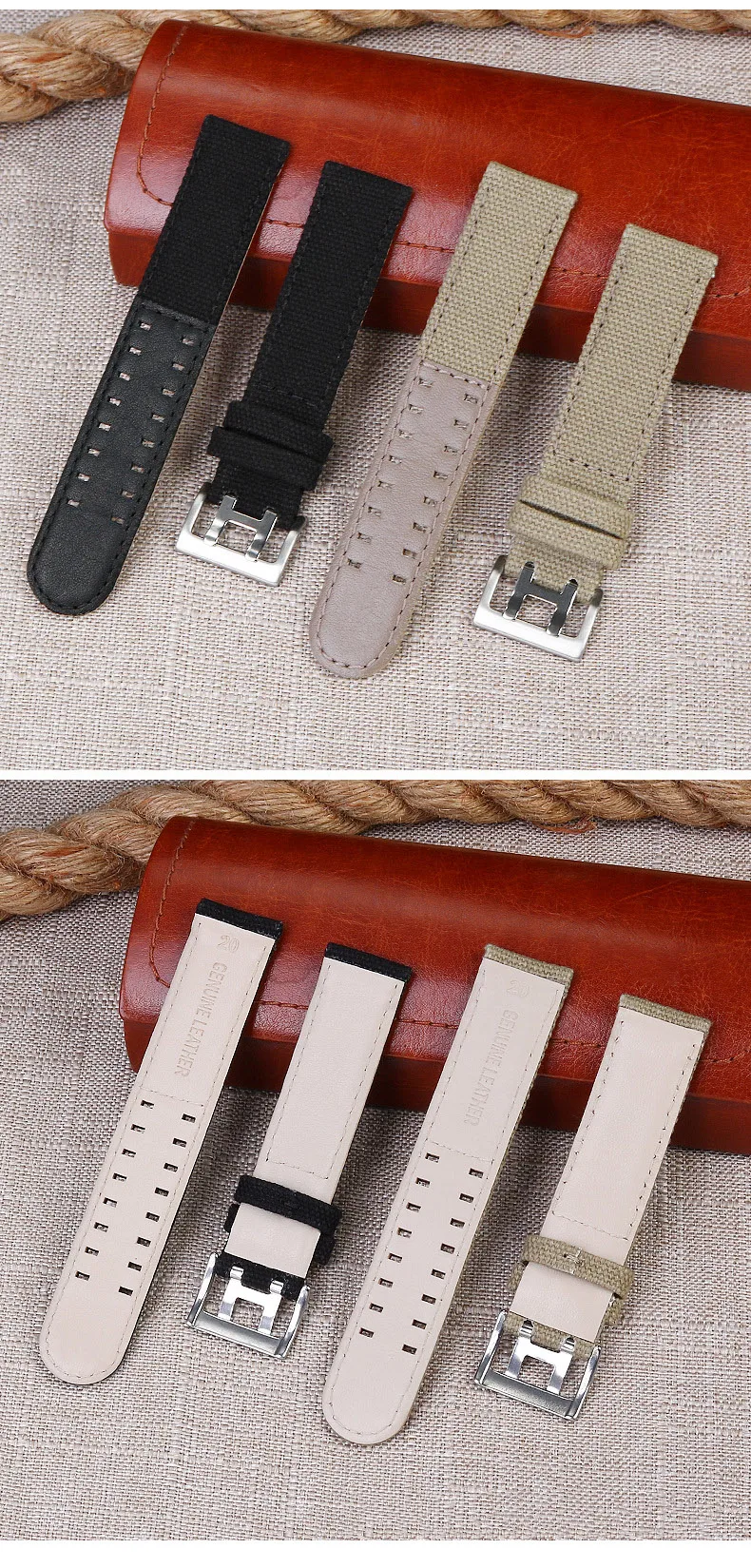 Ремешок кожаный для наручных часов, спортивный брезентовый браслет для Гамильтона Сейко, хаки, коричневый, черный, H68201993, H760250, H77616533, 20 мм 22 мм