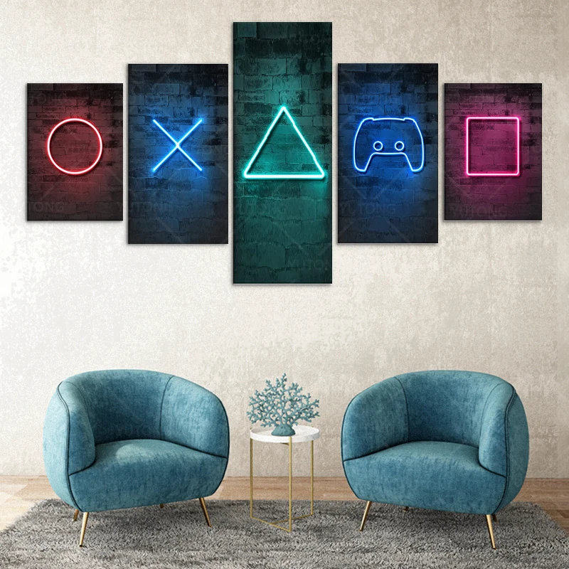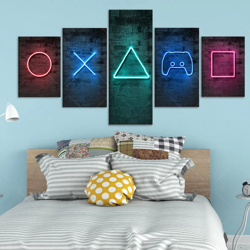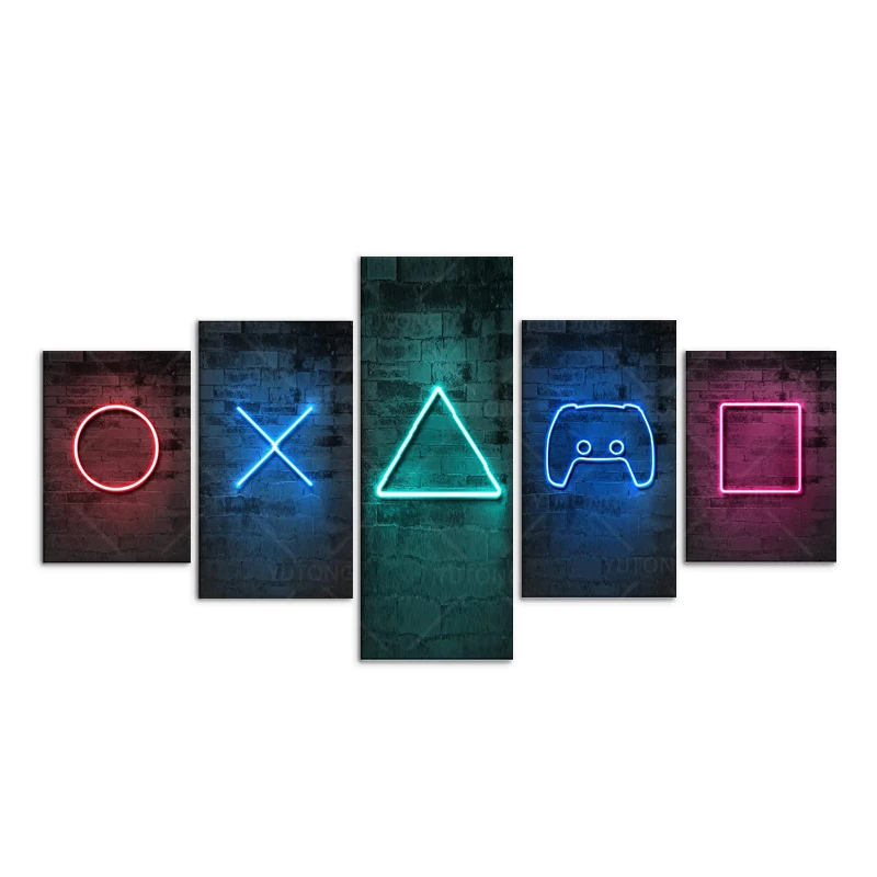 Печатные неоновые наклейки в рамке для игровой комнаты, декор для мальчиков, декор для видеоигр, декор для Playstation, настенное художественное полотно