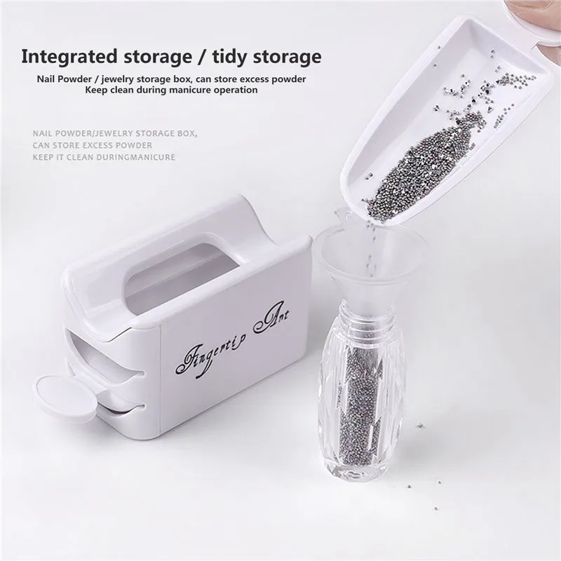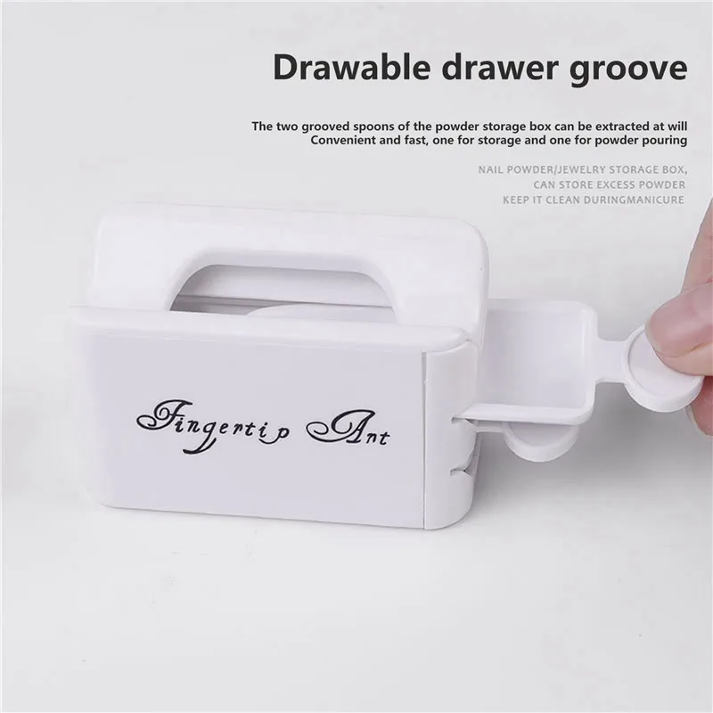 Коробка для хранения: Эта коробка для хранения порошка для ногтей может хранить лишний порошок, чтобы сохранить чистоту рабочего стола во время процесса улучшения ногтей.