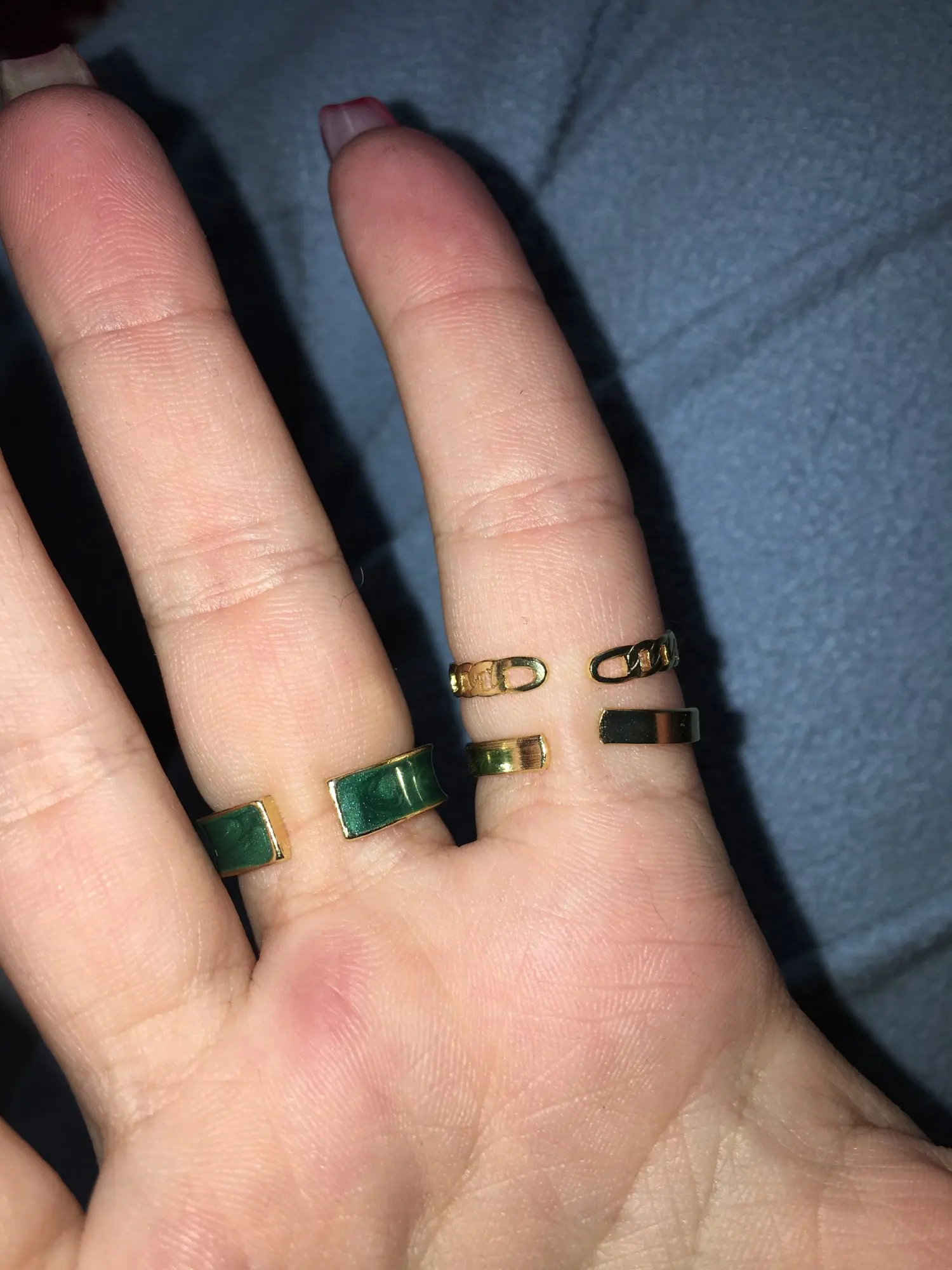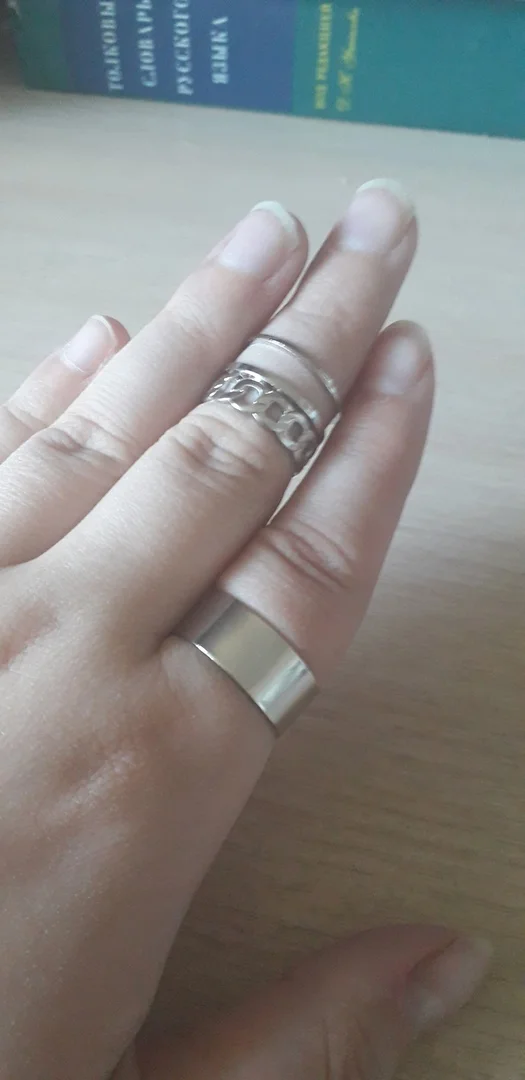пришло пять колец. товар был доставлен быстро. материал довольно приятный, носить кольца комфортно, с виду они выглядят очень даже ничего. если ещё и учитывать их цену (покупка обошлась в 90 рублей), то с уверенностью можно сказать, что кольцами я довольна. с продавцом не общалась.