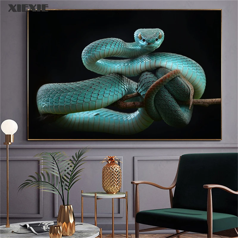 Постер с изображением синей змеи в скандинавском стиле, животное, Картина на холсте, змея, настенное украшение для дома, настенное искусство, картины