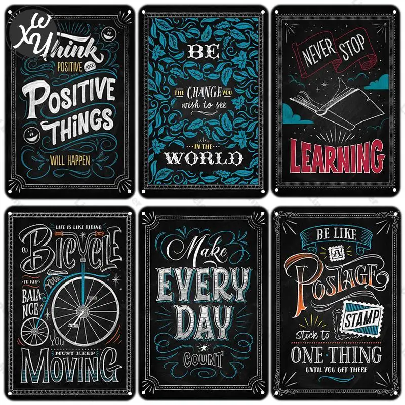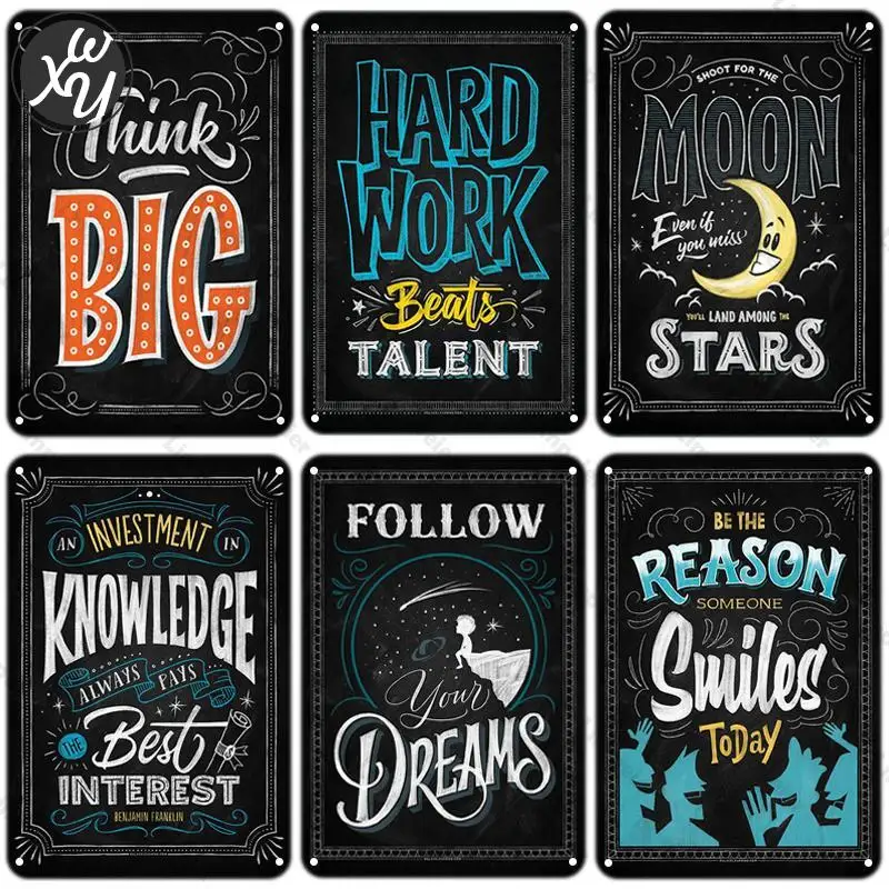 Вдохновляющие буквы, металлическая табличка, черные настенные наклейки, жизненная цитата, металлический знак, жестяная жесть для работы, винтажное настенное искусство, жестяной металлический декор