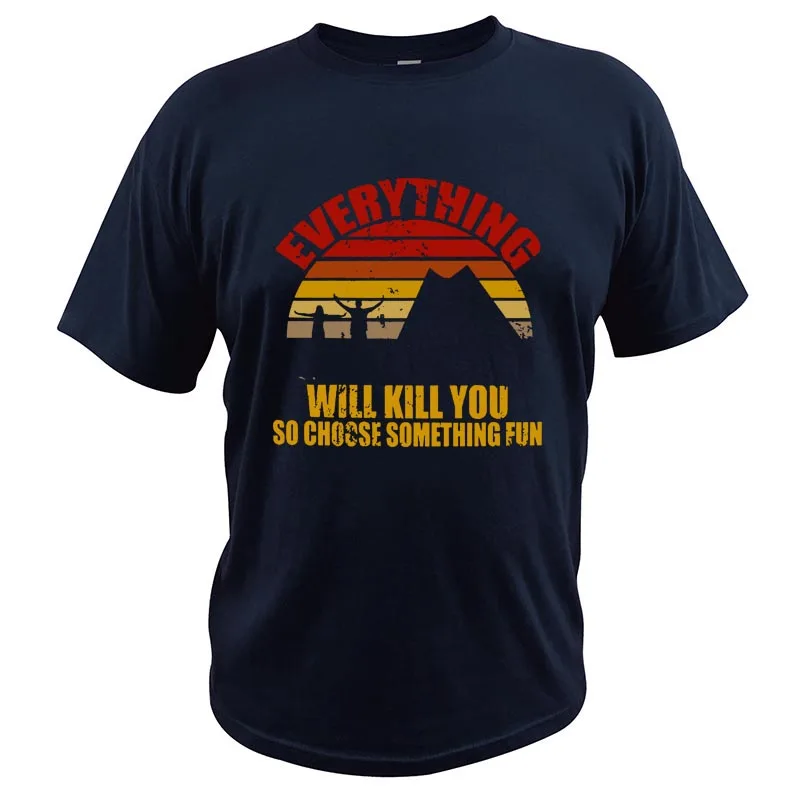 Все будет убить вас, так что выбрать то, Веселая футболка в винтажном стиле забавные восхождение Lover Мужская одежда мягкий 100% хлопок летний топ