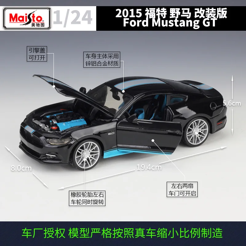 Модифицированный автомобиль Maisto 1:24 2015 Ford Mustang GT, сборные автомобили, строительные блоки, сборная модель автомобиля из сплава, коллекция игрушек, подарок
