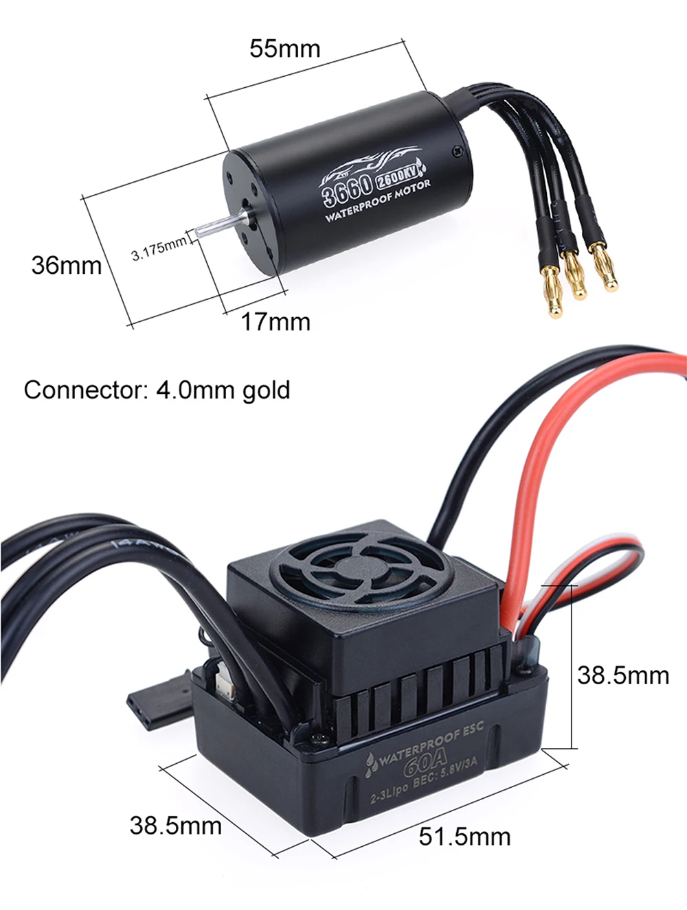 Мотор бесщеточный 3660 2600KV 3300KV 60A ESC для Tamiya Traxxas Sla...