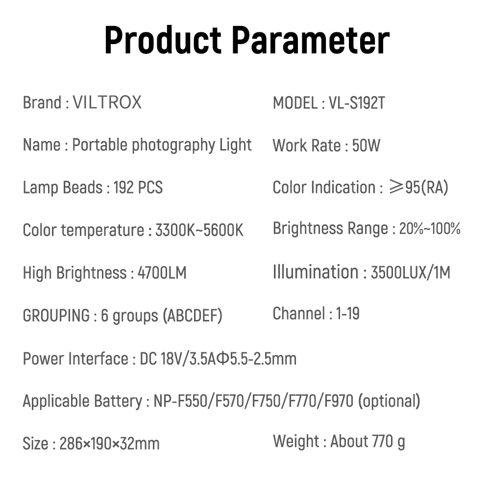 Viltrox VL-S192T светодиодная осветительная панель для видеосъемки, фотостудия, двухцветная осветительная лампа с регулируемой яркостью и осветительной стойкой