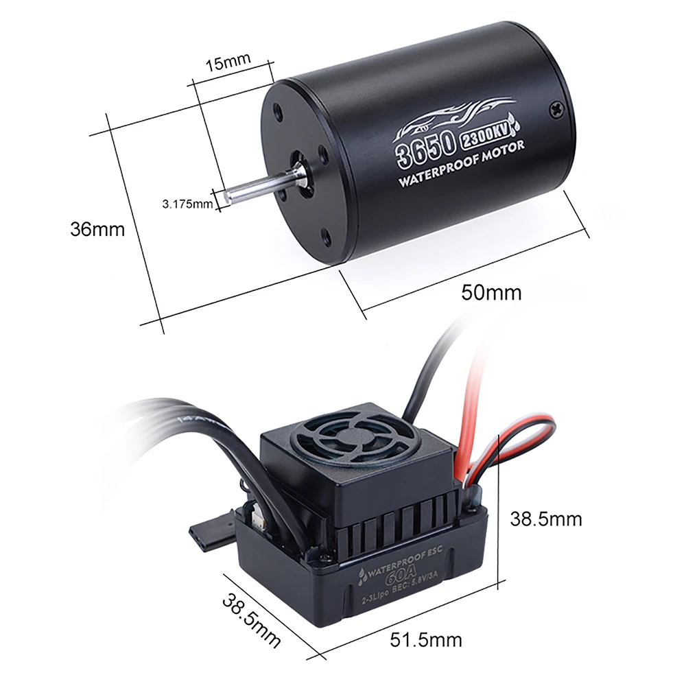 Водонепроницаемый 3650 2300KV 3100KV 3900KV бесщеточный двигатель 60A ESC для Tamiya Traxxas Slash Bandit Redcat 1/10 RC автозапчасти для грузовиков