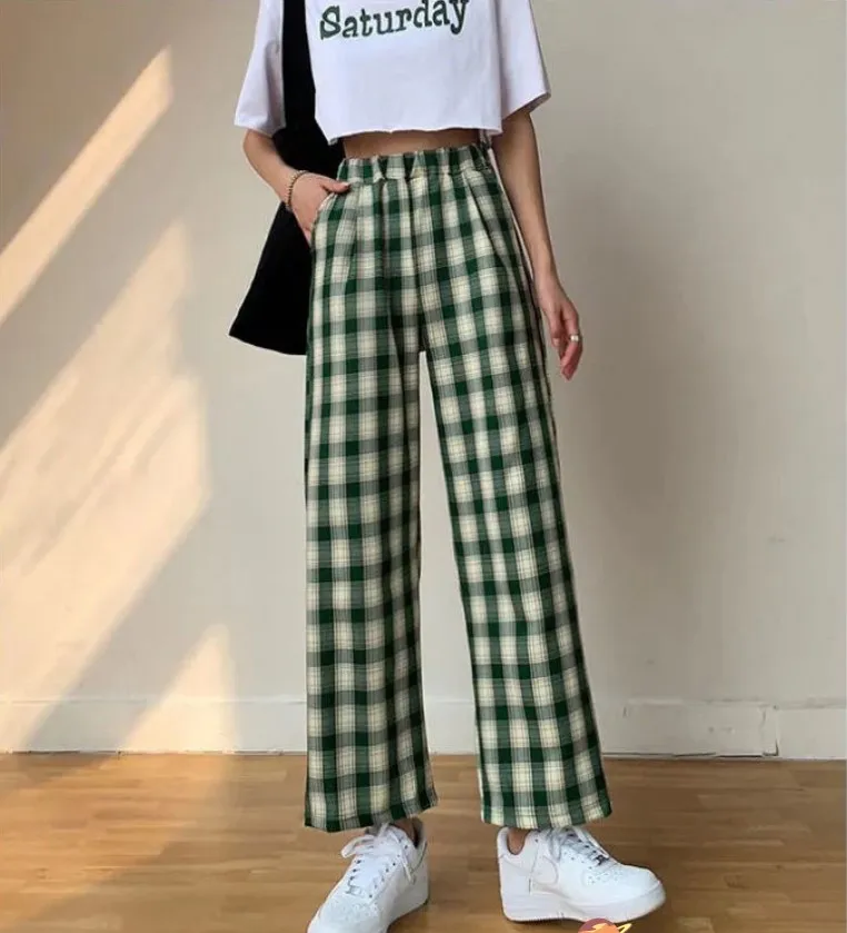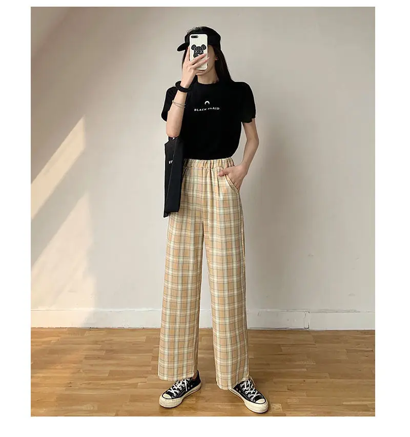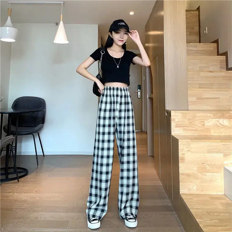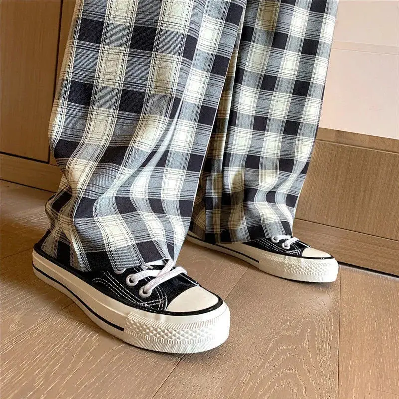 Простые винтажные клетчатые брюки y2k, весна-осень, повседневные длинные женские брюки, уличная мода, прямые широкие брюки, корейская мода, спортивные