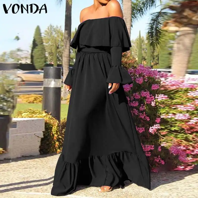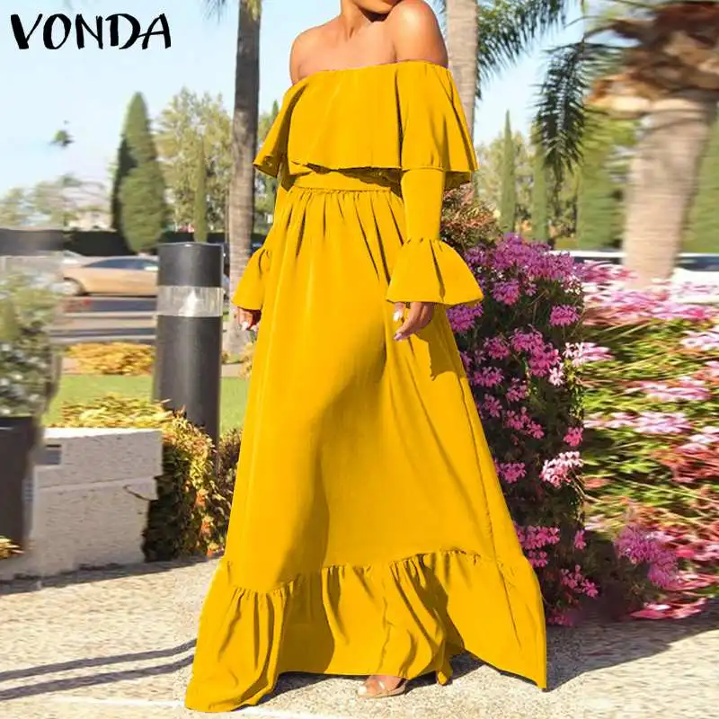 Женское летнее длинное платье VONDA, праздничный длинный сарафан с открытыми плечами, пляжный Повседневный Сарафан S-2021