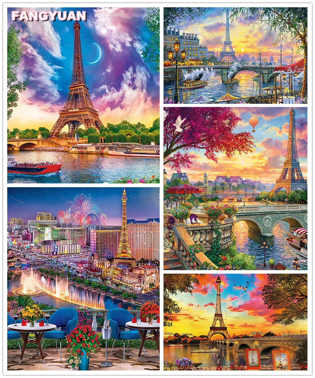 HUACAN Алмазная картина полная дрель квадратная круглая Эйфелева ба...
