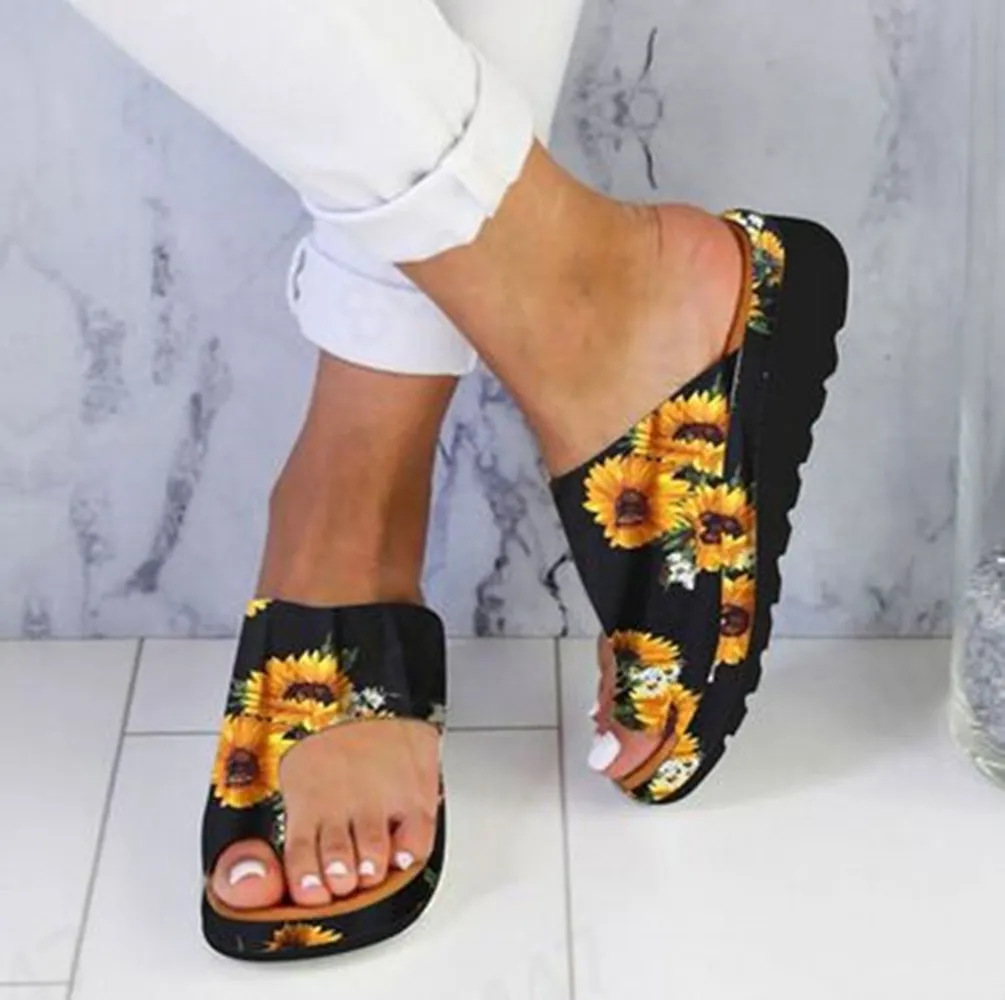 Богемные пляжные шлепанцы с принтом подсолнуха, модные повседневные...