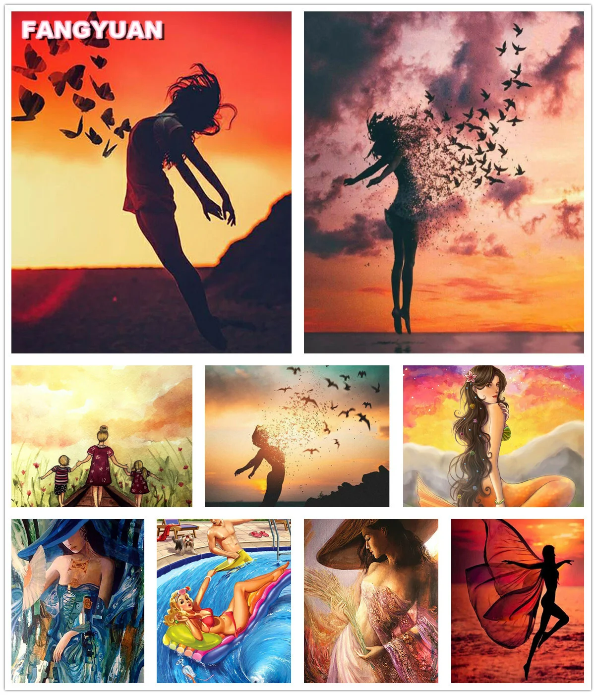 Бриллиантовая живопись Алмазная вышивка, девушка 5D, цветок, Женски...
